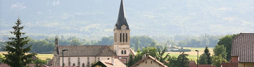 La première mention de l’église d’Amancy date de 1295. Elle était à l’origine dédiée à Saint Jacques et Saint Christophe. Au Moyen-Âge, elle dépendait de l’abbaye d’Entremont. Le premier curé des lieux était Guillaume d’Amancy, membre de la famille bourgeoise du village. Cette famille y possédait une chapelle. L’église fut reconstruite au XIXème siècle dans un style néogothique. Le seul point commun entre les deux édifices est la base du clocher. On y retrouve une fresque invoquant Saint Christophe, seul patron du nouvel édifice consacré en 1863. L’autel actuel proviendrait de la chapelle du Château du Quarre, hameau de la commune. Saint François de Sales disait régulièrement la messe sur cet autel. A l’entrée de l’église se trouve la pierre tombale de Nicod de Vêge, ancien curé inhumé en 1514 dans l’ancien sanctuaire.