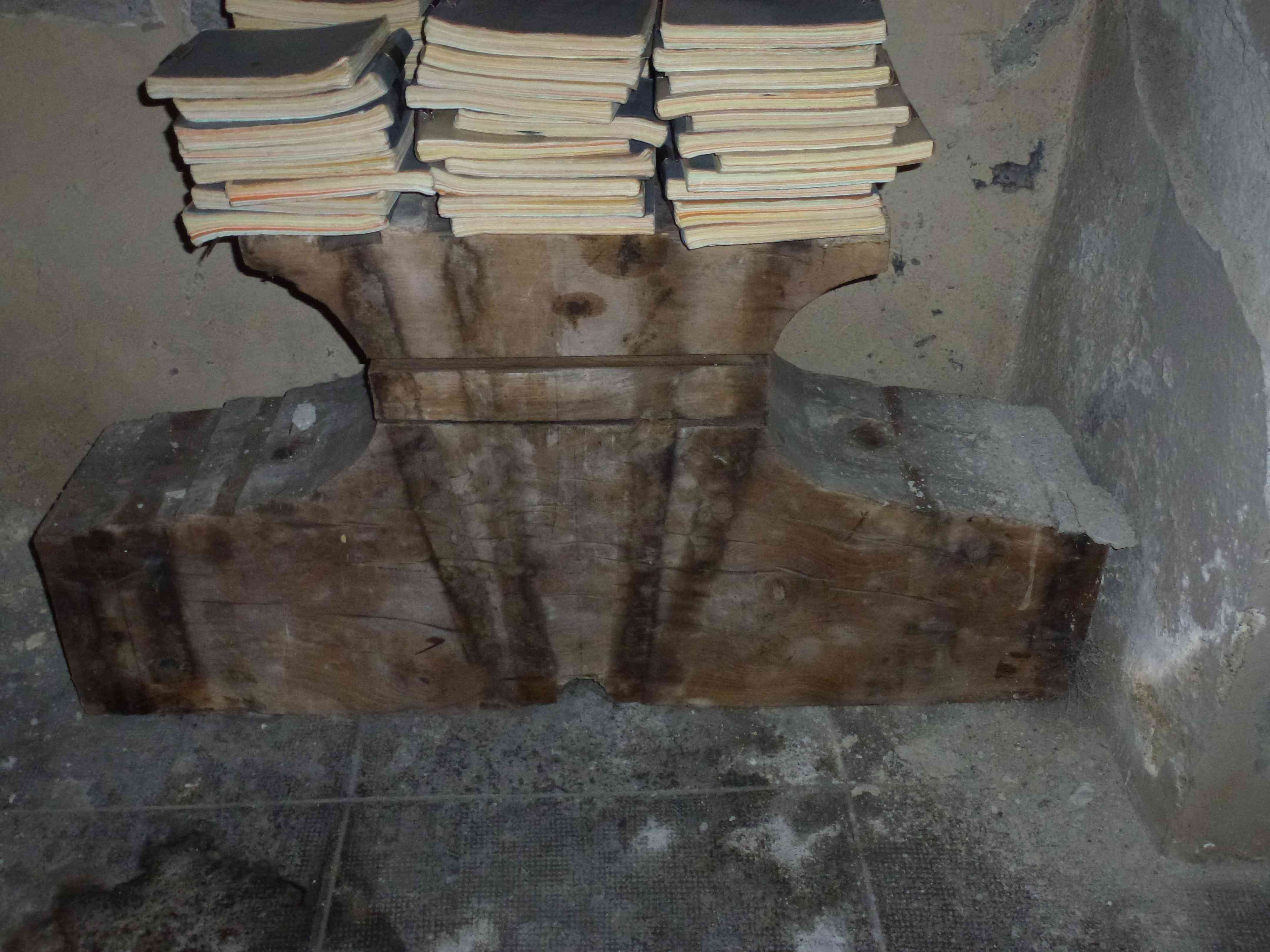 Ci dessus, l’ancien joug de la grande cloche, autrefois déposé au fond de l’église avant restauration.