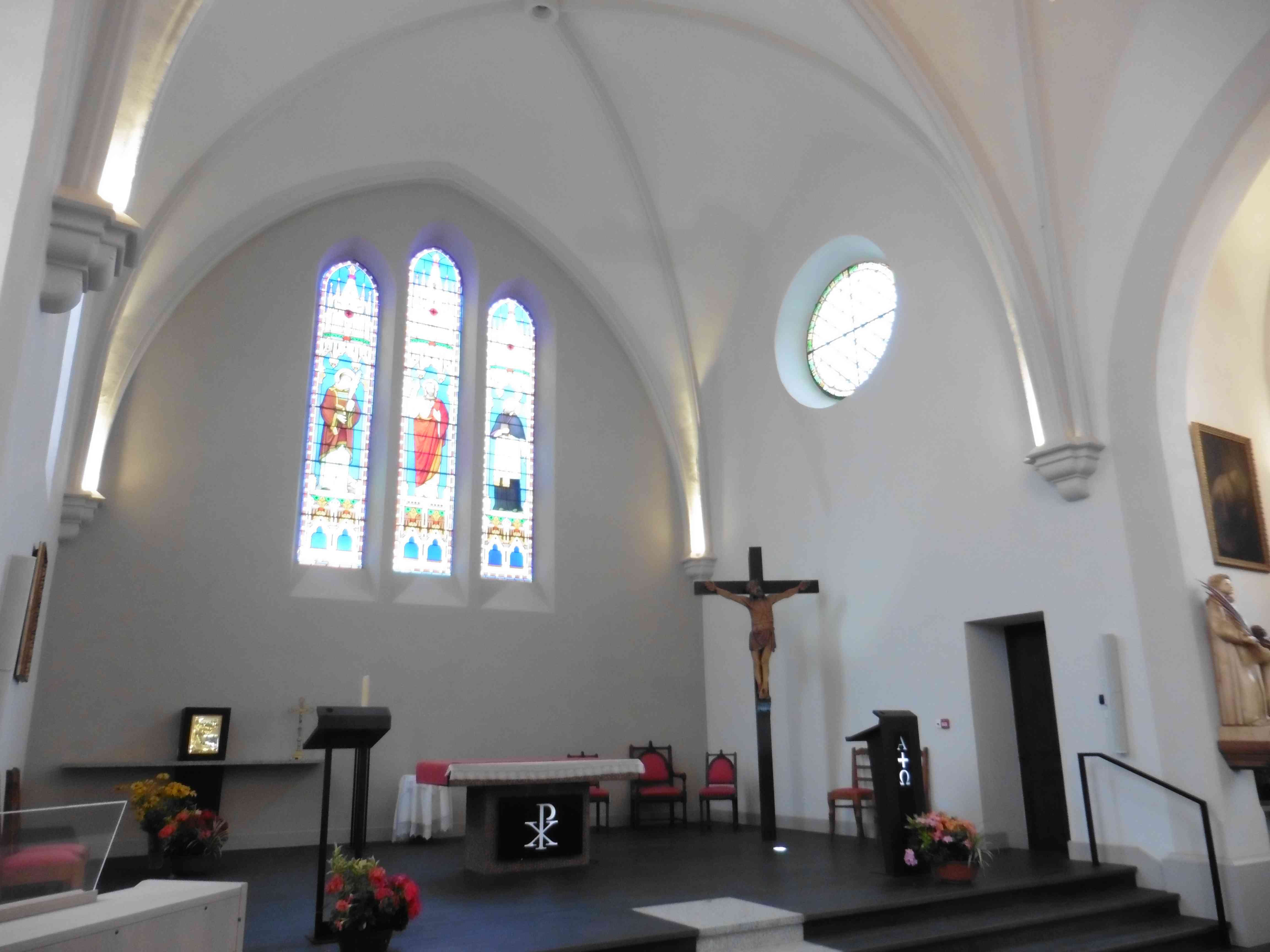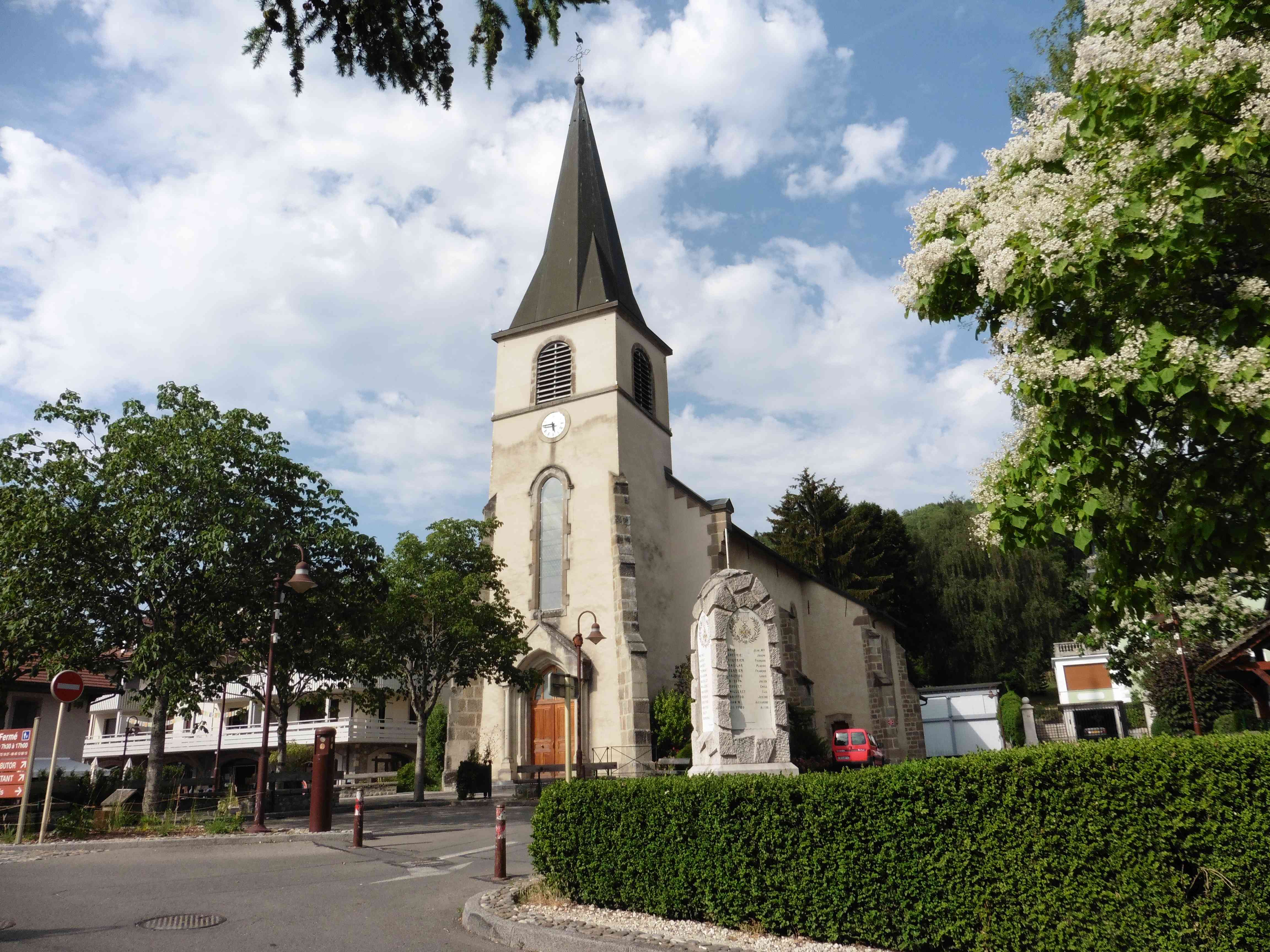 Le village de Lucinges, blotti contre les Voirons (montagne culminant à 1’480m), offre une formidable vue sur Genève et son grand lac. L’église et son imposante flèche trônent à 712 mètres d’altitude. Les origines d’une paroisse sont fort lointaines : elle était sous la tutelle des abbayes de Cluny et de Saint Victor (Genève) aux XIe et XIIe siècles. En regardant depuis 14 communes (limitrophes ou non) en direction des Voirons, on remarque la silhouette du clocher de Lucinges. C’est la partie la plus ancienne de l’église. En effet, sur sa base, on peut contempler les armes de la famille Faucigny-Lucinge combinées avec celles des Seigneurs des Allymes qui ont déserté la Savoie en 1602. La base de la tour-clocher date donc au plus tard du XVIe siècle. Il est possible qu’elle soit le seul vestige du château de Lucinges. Cependant on apprend que l’ancien édifice qui datait de 1733-1734 était construit sur les fossés dudit château. Le terrain instable et le poids des ans l’avaient fragilisé, ce qui obligea les paroissiens à le reconstruire entre 1898 et 1900. L’église a alors été déplacée de l’autre côté du clocher afin de dégager une place marquant l’emplacement de l’ancien château de Lucinges. Lors de ces travaux la flèche du clocher faite en 1736 a été rénovée. Opération renouvelée il y a quelques années. Il y a deux ans, c’est la nef qui a eu droit à une seconde jeunesse. Dans le style néogothique, elle a vu ses lustres retravaillés, la tribune supprimée et un tout nouveau mobilier arriver, avec une pointe de modernisme, mais qui s’intègre bien dans le lieu de culte paroissial.