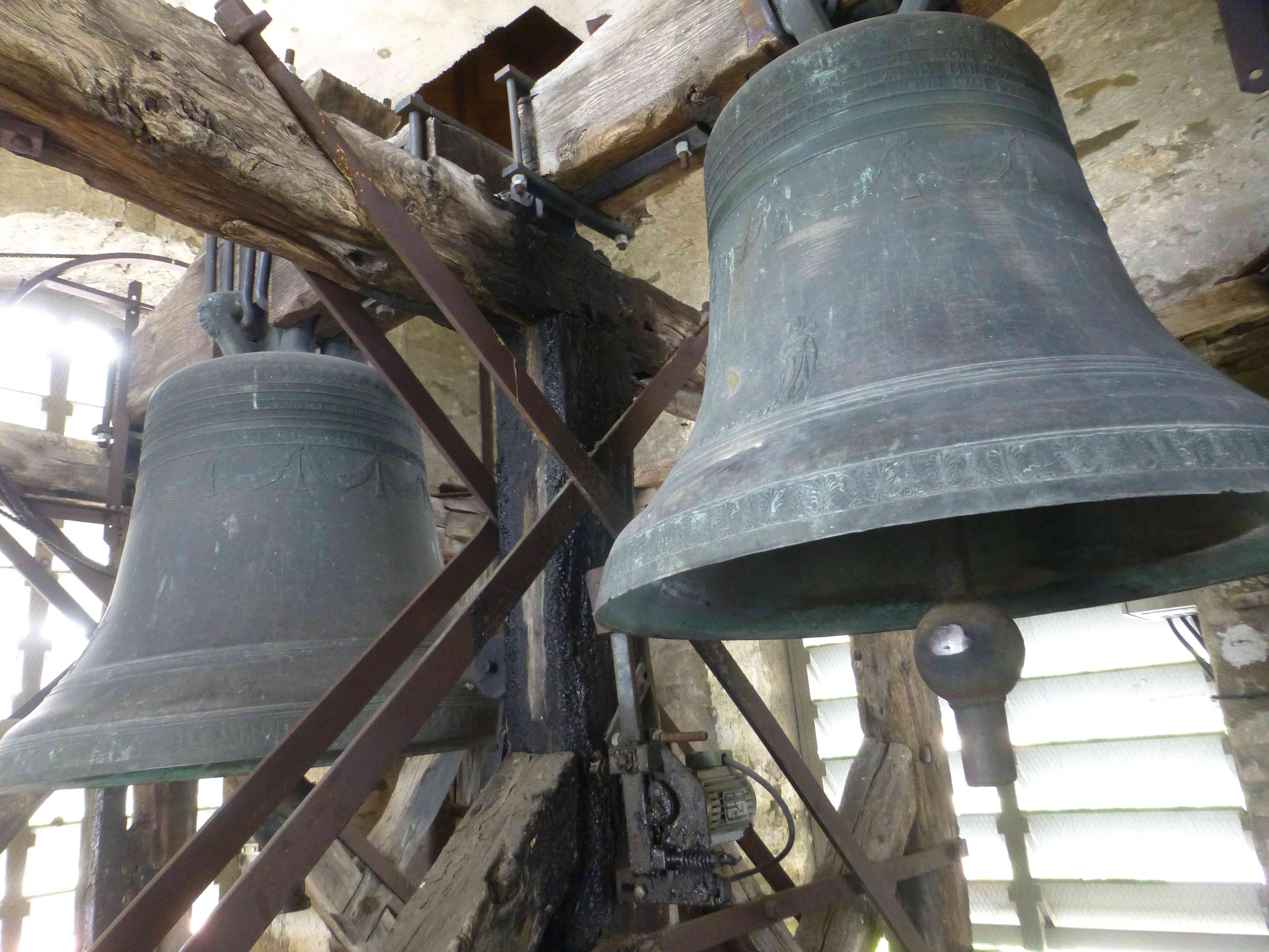 (signature sur les cloches, dédicace, masse, diamètre, note (La3 =435 Hz)