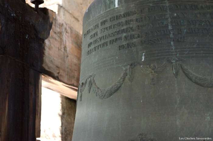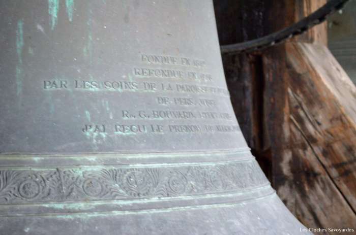 - À Pers, les premières mentions datent de 1754, quand les deux cloches en place furent refondues et augmentées par Jean-François Livremont, fondeur originaire de Pontarlier installé à Annecy. Mais elles disparurent à la Révolution. Joseph Naville, agent communal, récupère alors à Bonneville une cloche estimée entre 470 et 515 kilos pour l’installer au clocher de Pers. La description et la provenance de la cloche sont connues : elle a été fondue en 1784 par Claude-Joseph Livremont, membre de la même dynastie que Jean-François, pour la paroisse d’Argentière (Chamonix). Confisquée à la Révolution, elle fait partie des 92 cloches réinstallées dans un clocher dès 1796. En 1816, les élus chamoniards essayent en vain de la récupérer.
