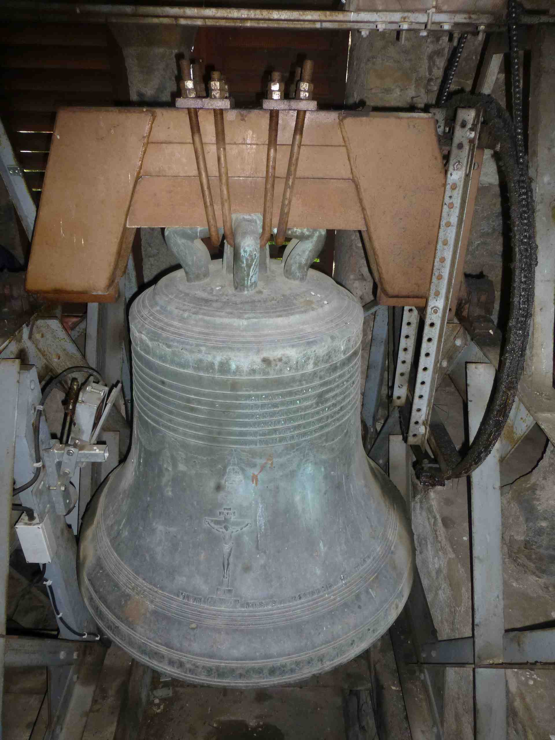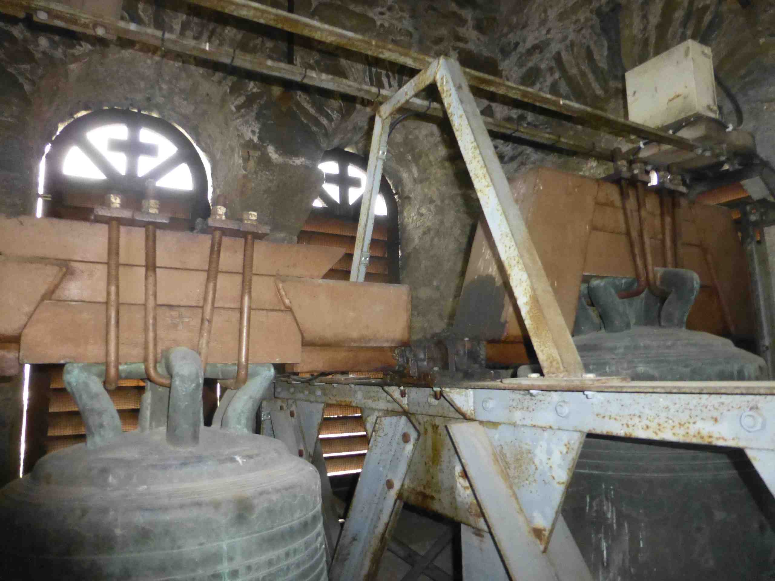 Les deux cloches sont équipées de jougs en acier et supportées par un beffroi lui aussi métallique.