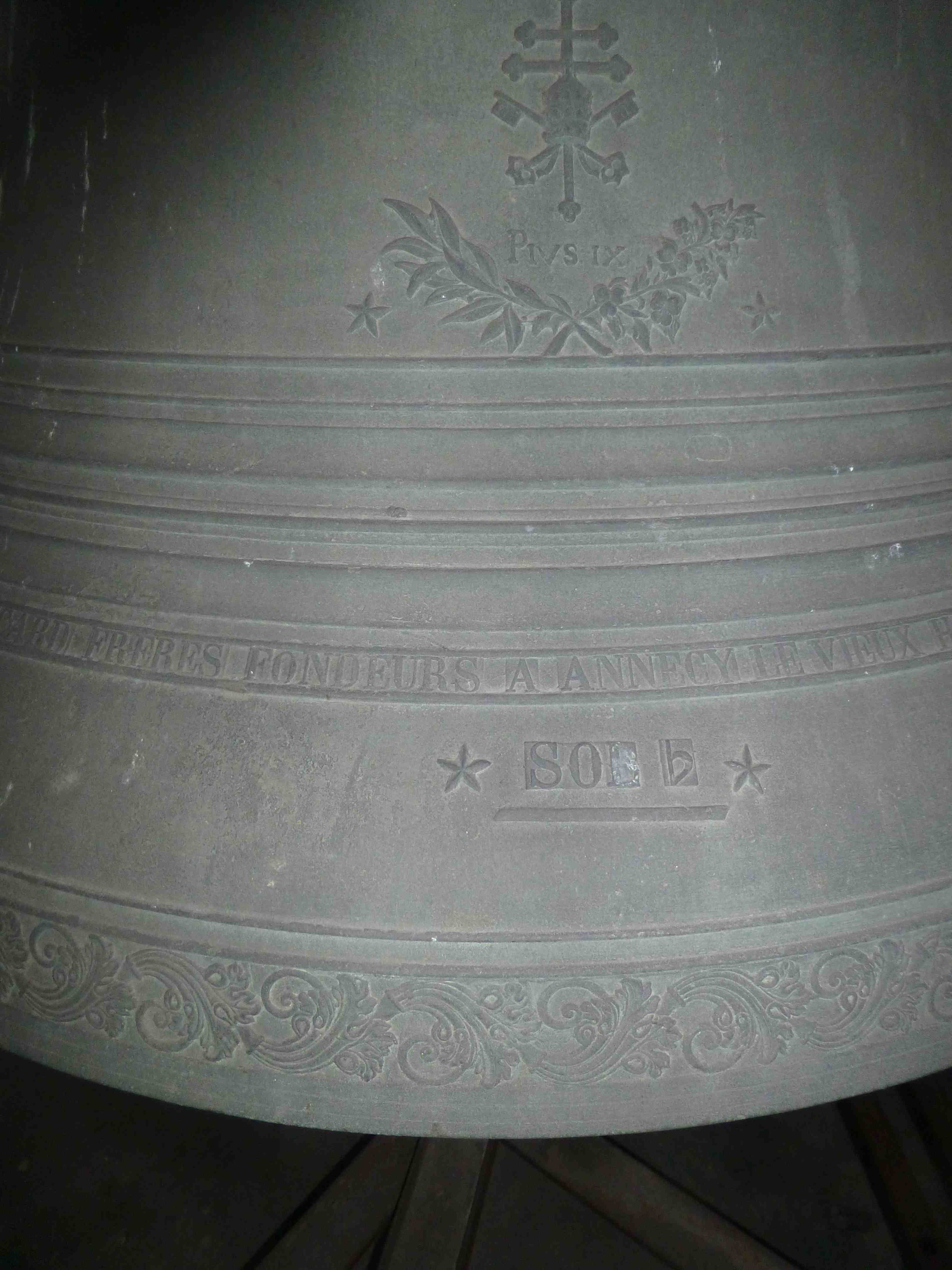 Cloche 1 « Marie Pie Gasparde » : Frères Paccard, 1872 – 800 kilos – Fa Dièse 3