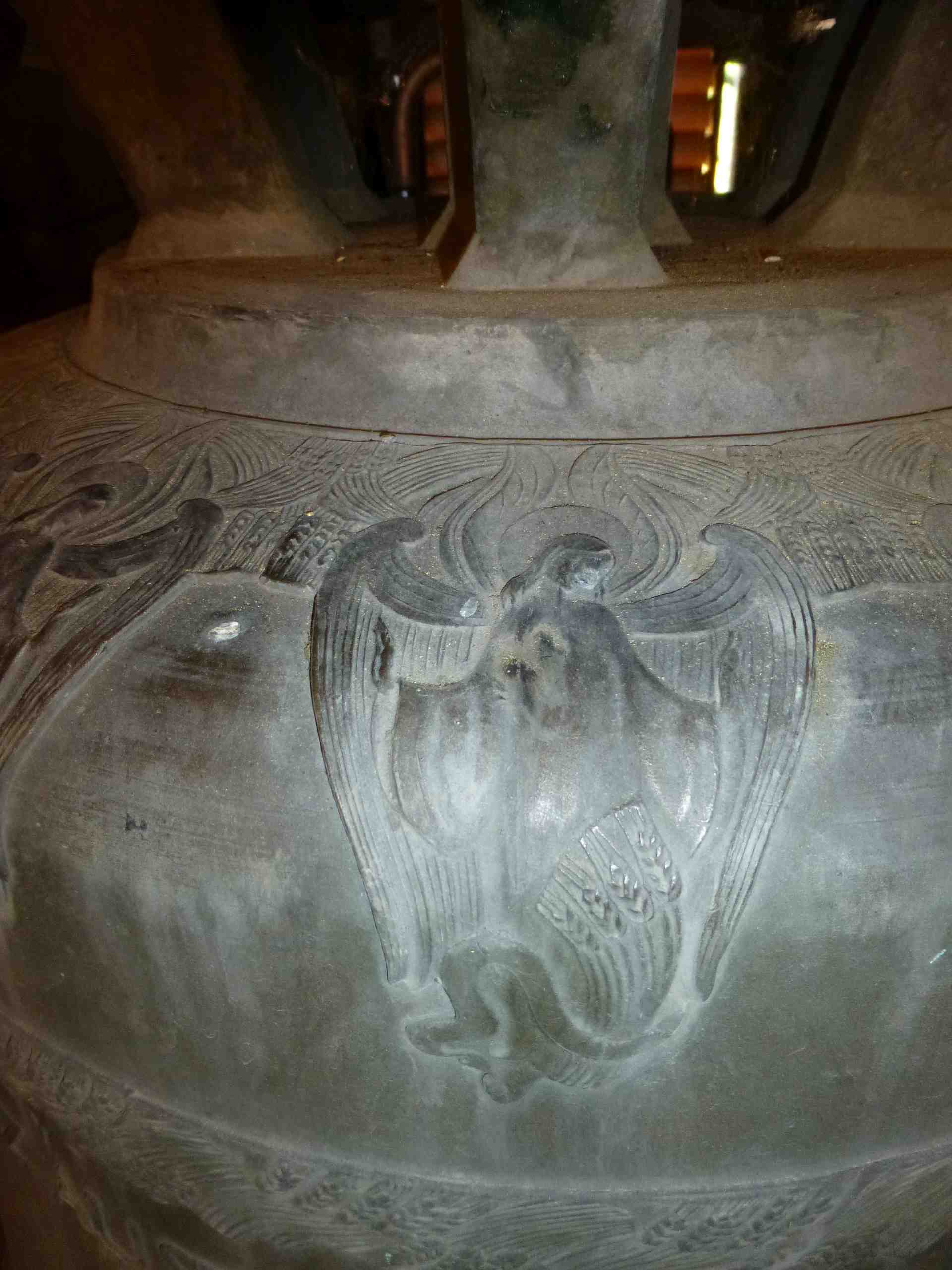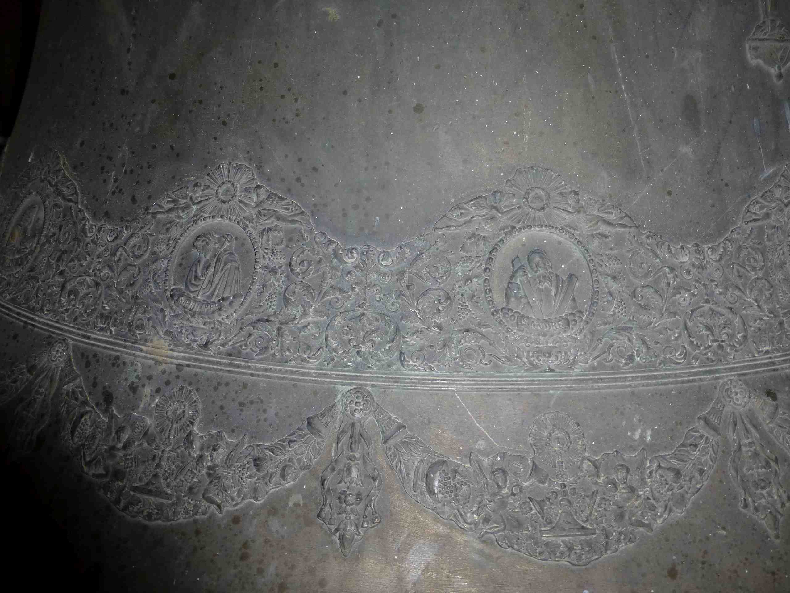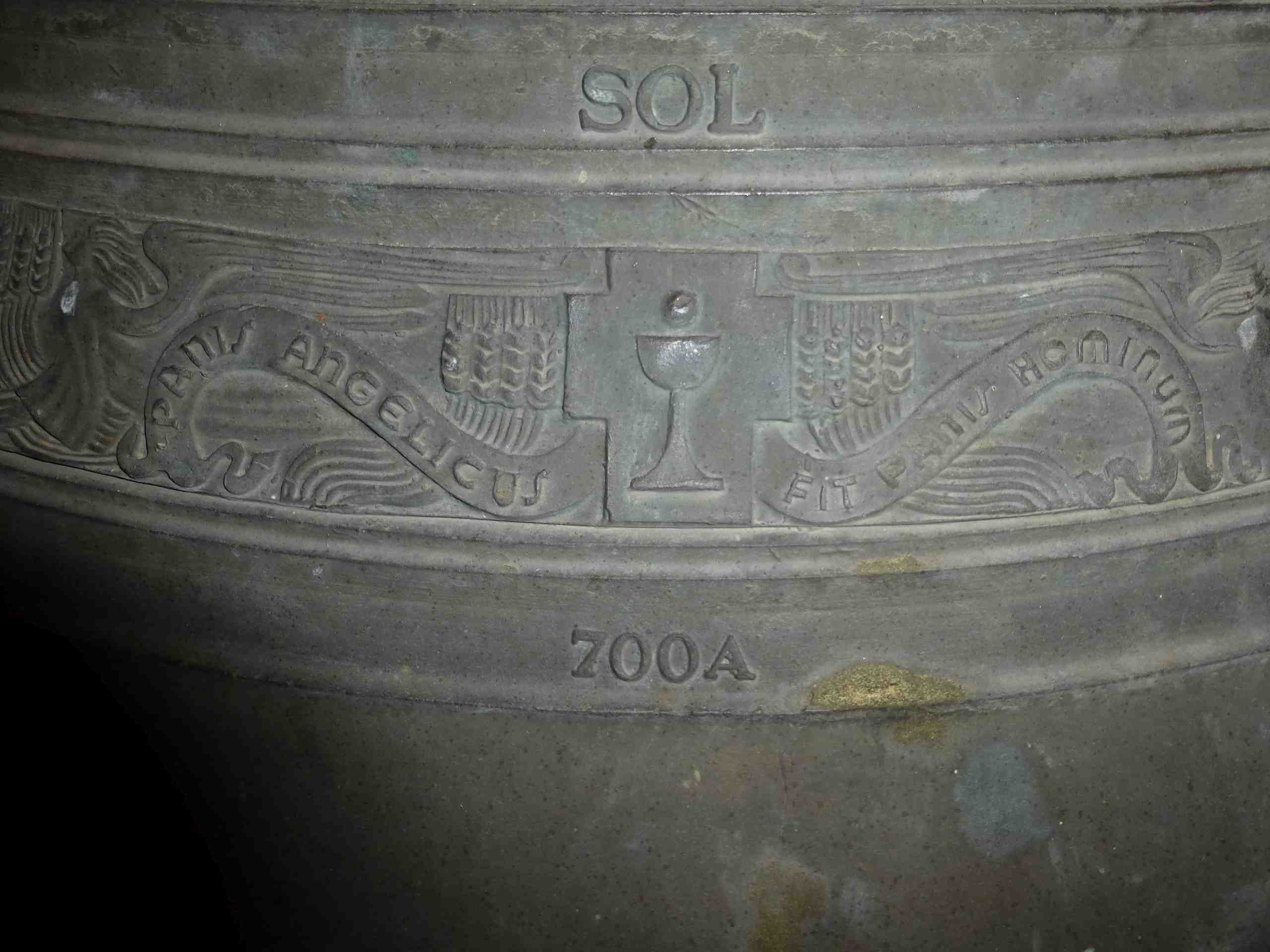 Le « Panis Angelicus », la note et le numéro de série sur la cloche n°3.