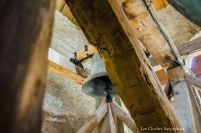 Face à elle, la plus petite cloche trône fièrement, défiant les siècles. Datée du mois d’août 1677, elle fut commandée par le curé Ducretet, remplaçant déjà une cloche plus ancienne. Il l’a lui même parrainé avec Claude Cuilaz pour lui donner le nom de « Fabienne-Claude ». Plus modeste, le fondeur ne nous a laissé que ses initiales « C. V. ». Il n’est pour l’heure possible de mettre aucun nom sur son identité… La cloche, muette depuis des décennies et jadis utilisée pour le tocsin, elle a été électrifiée fin 2017. La première volée officielle eut lieu le jour de Pâques 2018. Désormais, elle chantera occasionnellement avec ses grandes sœurs pour les grandes occasions.
