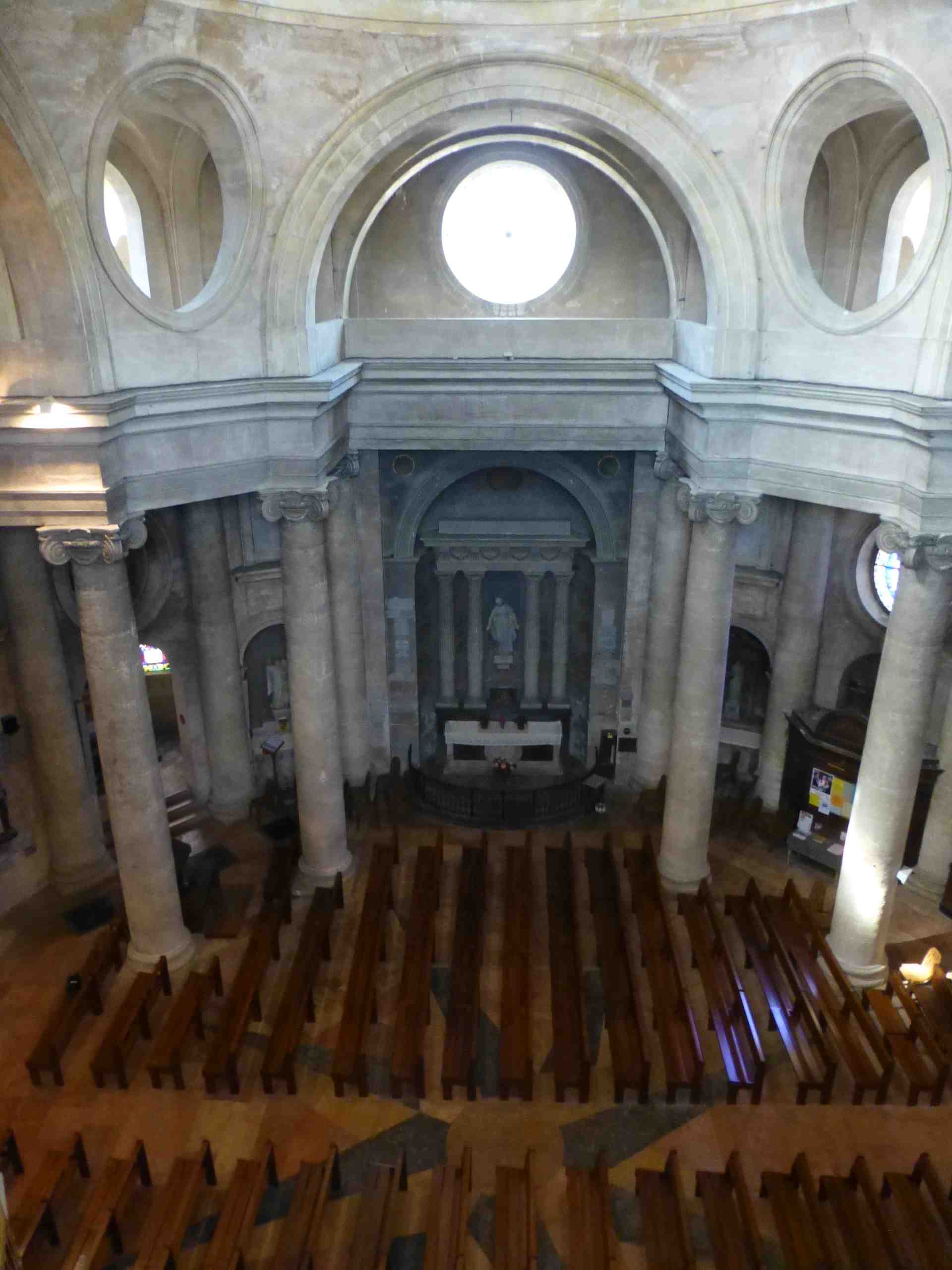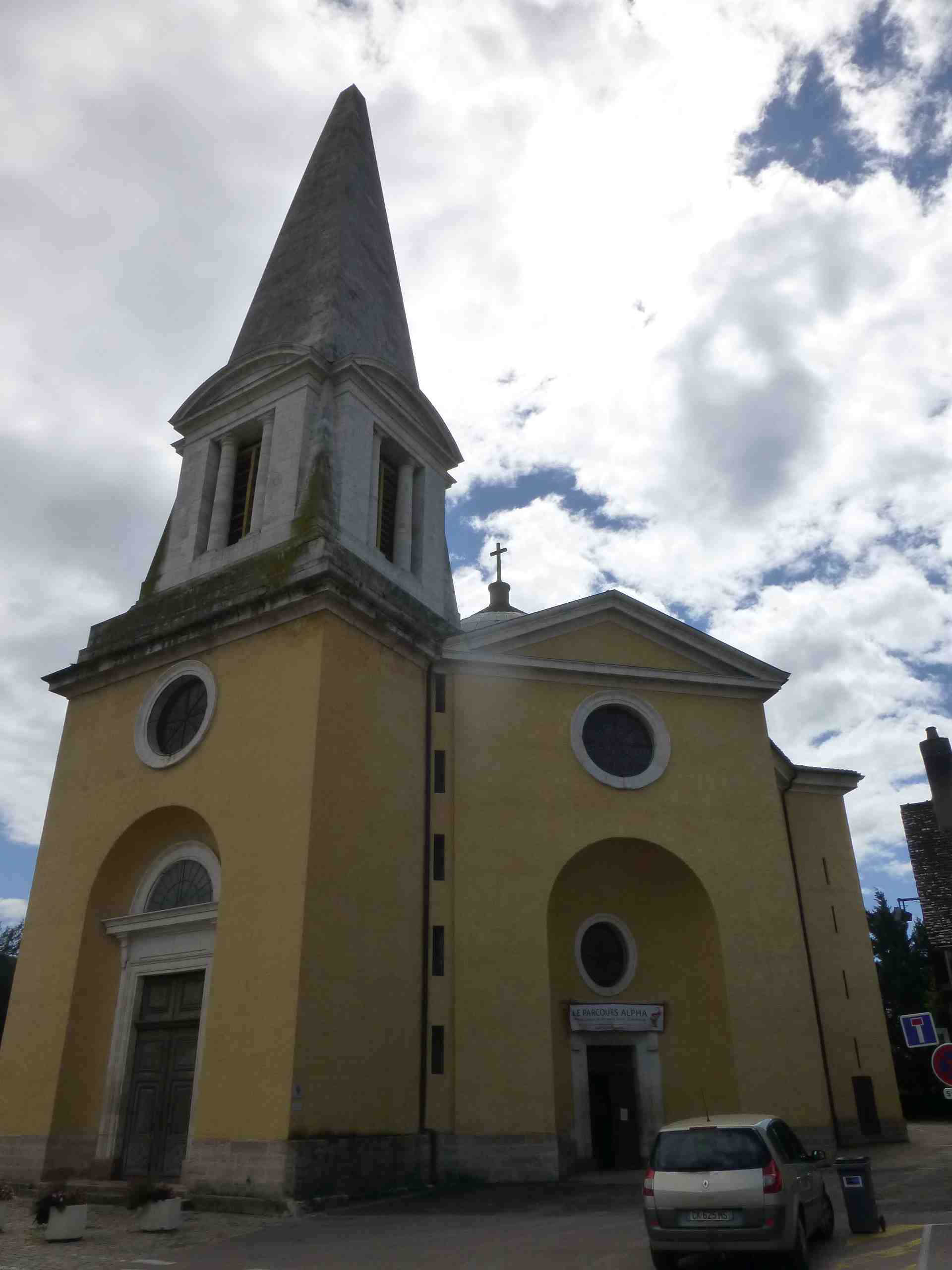 La paroisse de Givry remonte a une époque fort lointaine… Le christianisme s’ implante dès le IVe siècle dans cette cité gallo-romaine. Au cours du XIXe siècle, on retrouve à l’Hôtel de Ville les registres paroissiaux du XIVe siècle : Givry était plongé en pleine peste. A la fin du XVIIIe siècle, alors que la paroisse perd en foi, une nouvelle église sera bâtie afin de symboliser son renouveau spirituel. Construite entre 1773 et 1791 sous la direction d’Emiland Gauthey, elle exprime un style néo-classique avec une forte inspiration sur l’antiquité. Lorsqu’on pénètre dans le remarquable édifice, c’est comme si nous remontions le temps pour arriver à l’Antiquité. Son orientation nord/sud a été souhaitée par les paroissiens pour que l’entrée donne sur la route, lieu de passage depuis des siècles.