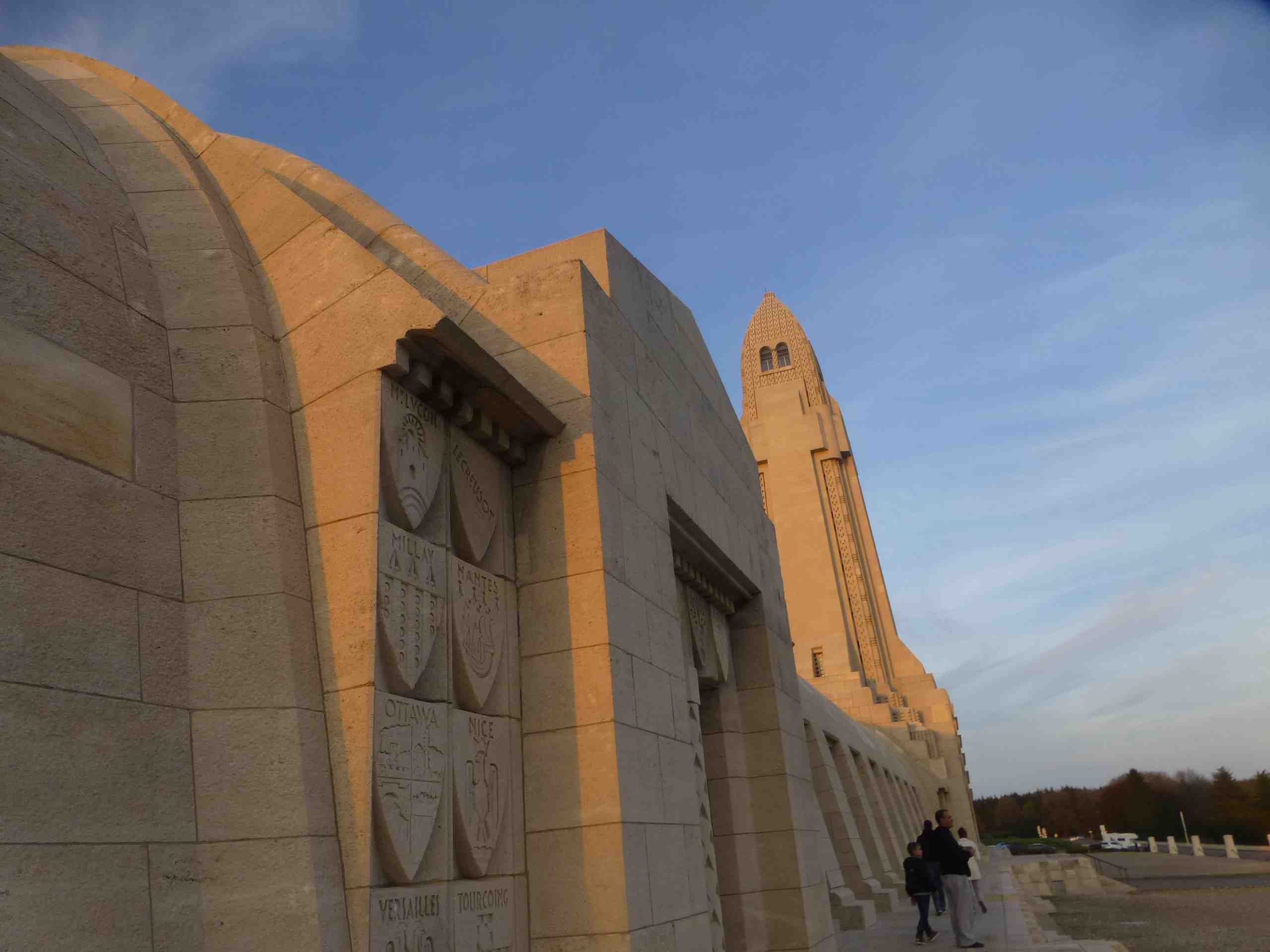 L’Ossuaire de Douaumont est situé à quelques kilomètres de la ville de Verdun. Au lendemain de la Première Guerre Mondiale (1914-1918) et plus particulièrement de la bataille de Verdun qui a fait rage en ces lieux de février à décembre 1916, un cimetière pour les soldats a été constitué afin que tout le monde se souvienne et s’y recueille. Un premier monument a été construit et utilisé de 1920 à 1927. Le monument actuel et définitif a été conçu par les architectes Léon Azéma, Max Edrei et Jacques Hardy et financé en grande partie par des fonds privés. Il fut inauguré en 1932. Un cloître long de 132 mètres permet de voir les tombes de tous les soldats inconnus, sans distinction de nationalité. Une chapelle, perpendiculaire à celui-ci, accueille encore des fidèles pour des offices et les prières de ceux qui veulent s’y recueillir. En plus de 130’000 soldats non identifiés entre ses murs, le monument surplombe la nécropole composée de 16’142 tombes de Français, dont 592 de soldats musulmans.