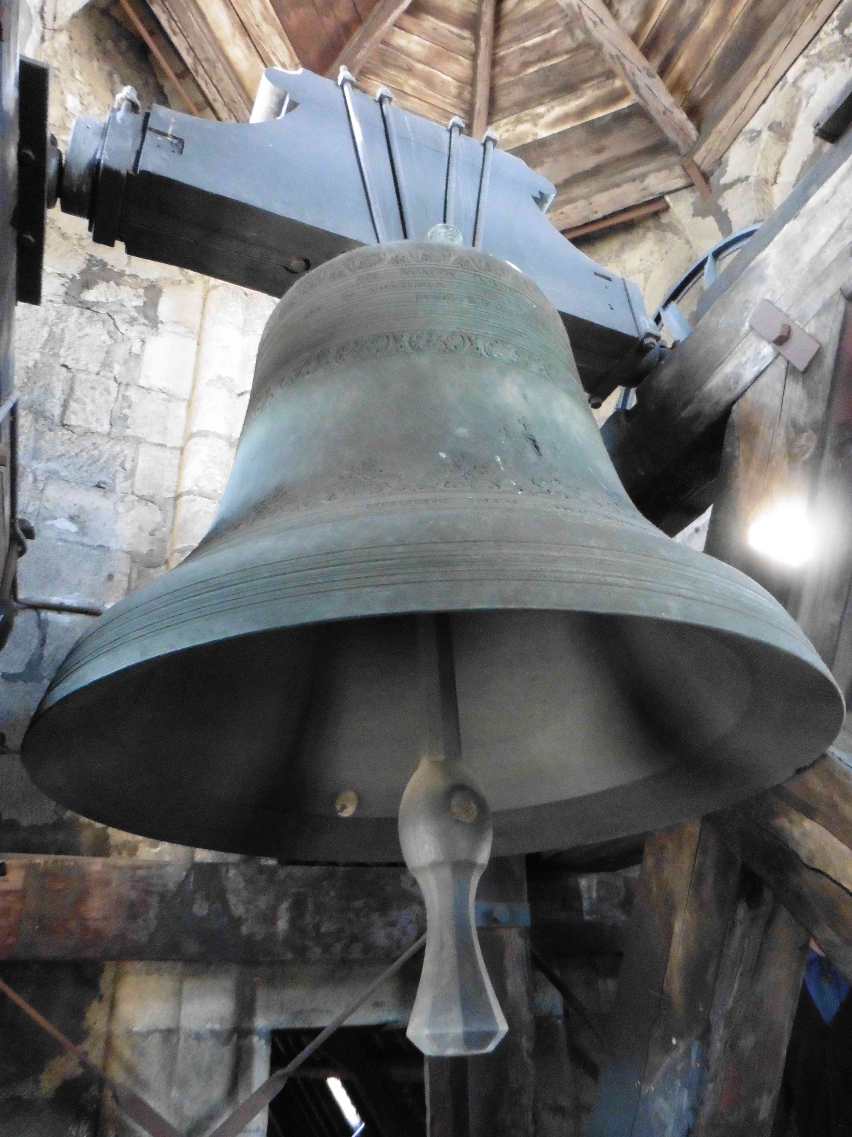 L’unique cloche nommée « Marie Augustine » en reconnaissance à sa bienfaitrice Madame Augustine de Monthoux a été fondue par Jean-Claude Burdin (Burdin Fils Ainé) en 1861. D’un poids estimé à 1’500 kilos (1639 avec son battant d’origine) elle mesure 133,5cm de diamètre et sonne le Ré3. Bénie en 1861, elle ne sera installée dans la tour qu’en 1862. Électrifiée en 1935, elle sonne automatiquement a 12h et 18h l’angélus et à 9h50 le dimanche. Elle est également mise en volée pour les mariages.