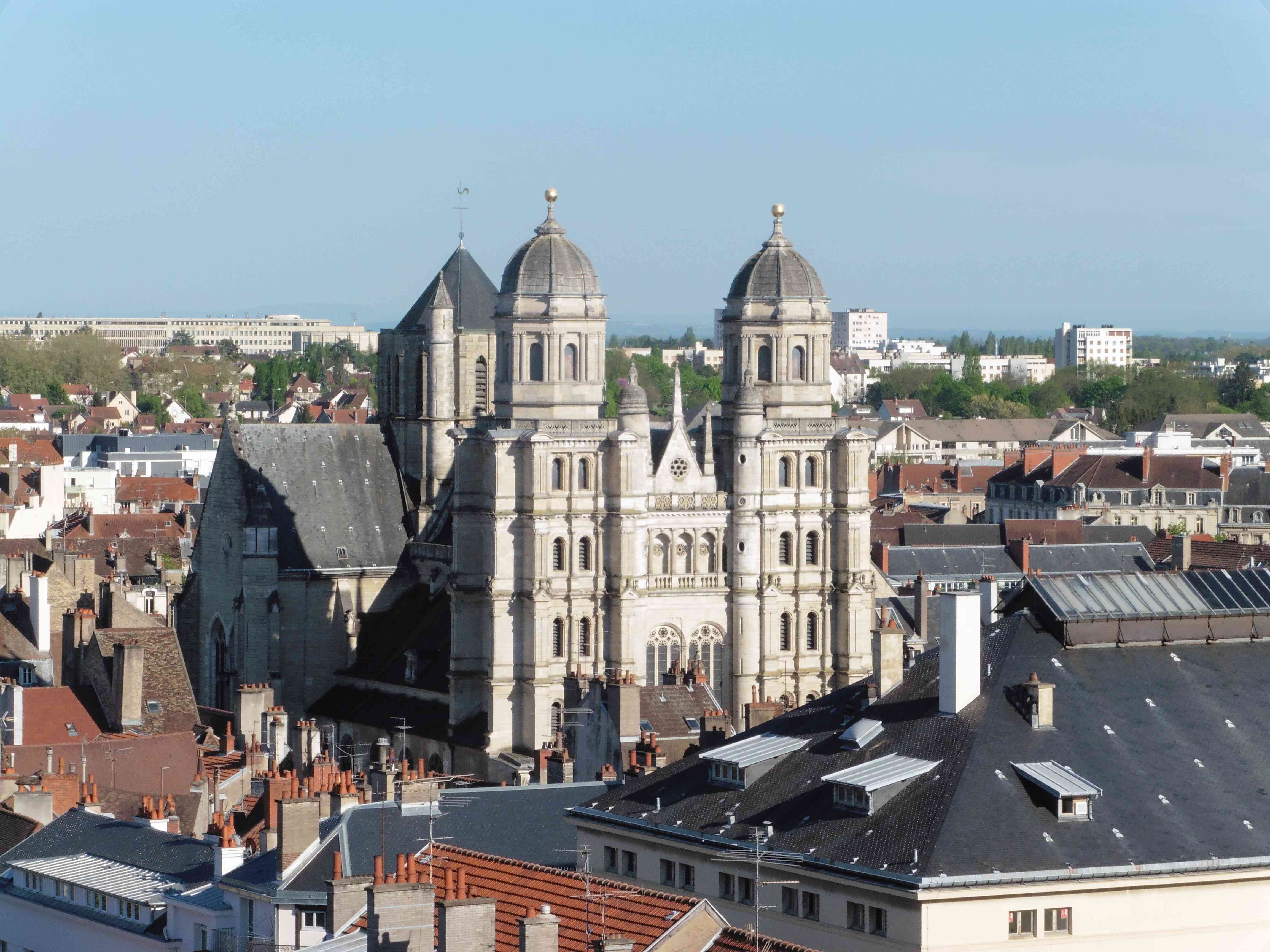 Le premier sanctuaire construit à l’emplacement de l’église Saint Michel remonte à 889. Il est certain que l’édifice était en bois. Devenu rapidement exigu, il fut très vite reconstruit sous l’impulsion de l’abbé de l’église Saint Étienne, édifice voisin aujourd’hui désacralisé. Saint Michel mesurait alors 58,44m de longueur et 9,74m de largeur. Son fondateur y a été inhumé en 1051. En 1497, le monument jugé « petit » par rapport au nombres de fidèles est rebâti. Les travaux sont interrompus en 1507 puis en 1513, lorsque la nef gothique fut achevée. Des mystères planent autour du chœur, car il a été allongé en conservant l’ouverture côté ouest (elle n’a donc pas été détruite). Les familles riches font bâtir – à leurs frais – des chapelles latérales. Vite édifiée, l’église sera consacrée en 1529. Cependant elle ne prendra sa forme actuelle qu’en 1667, date à laquelle la dernière des deux tours en façade est achevée. La façade figure parmi les plus remarquables de France, car elle mêle les styles gothique et renaissance. Ce mélange de courants architecturaux est expliqué par l’importance que les bourguignons donnaient au retour des formes antiques et l’influence de l’art italien.