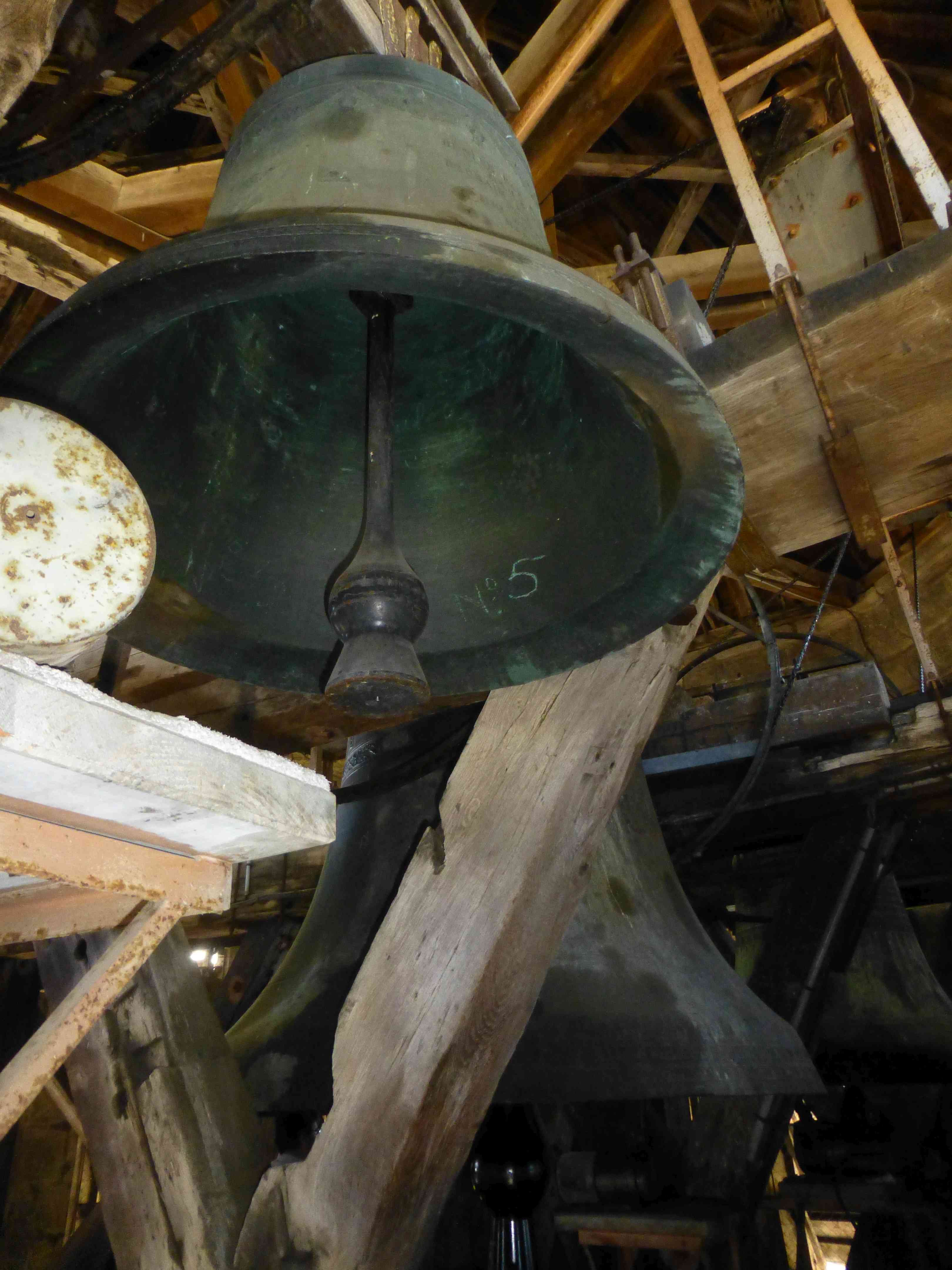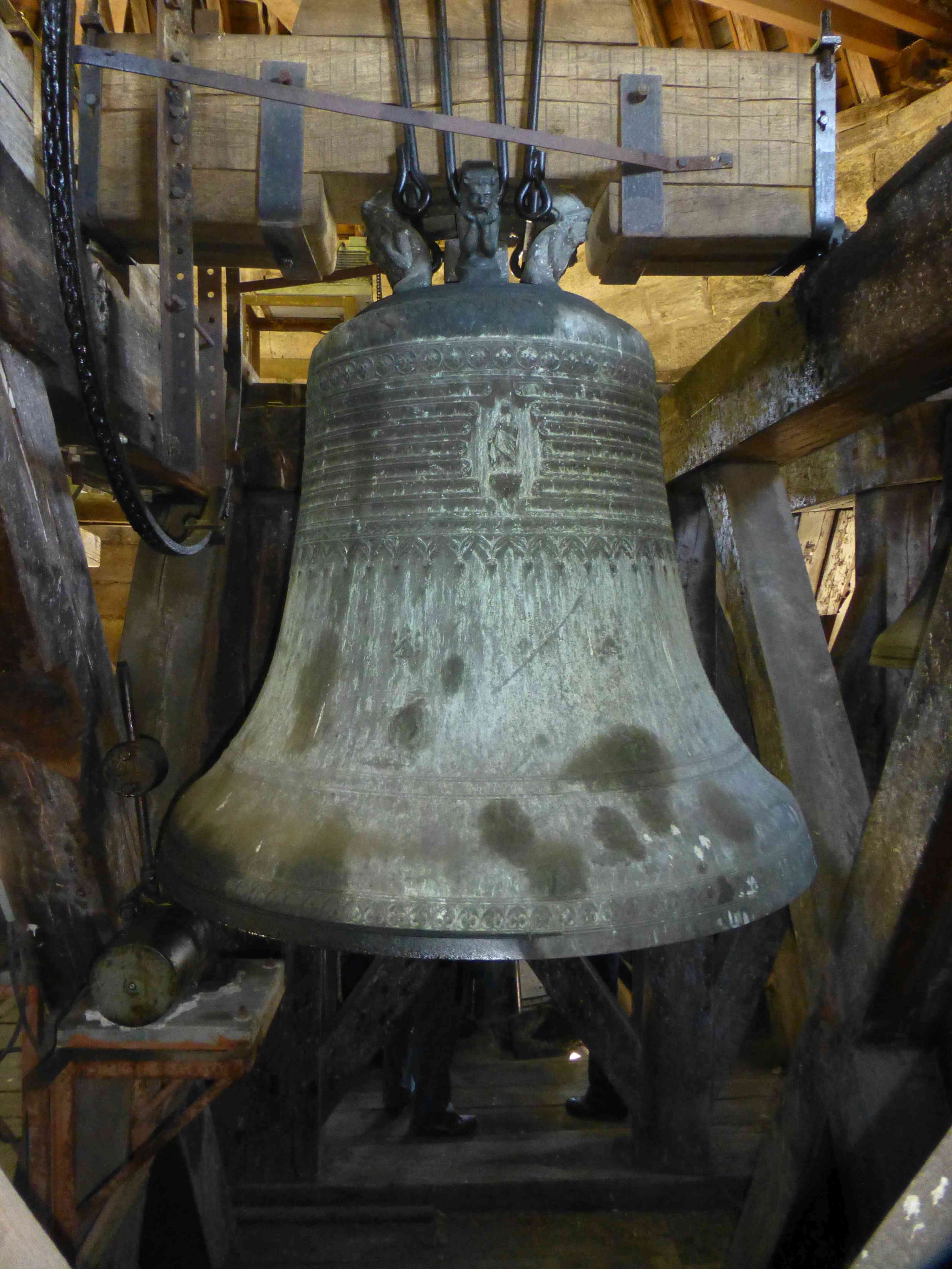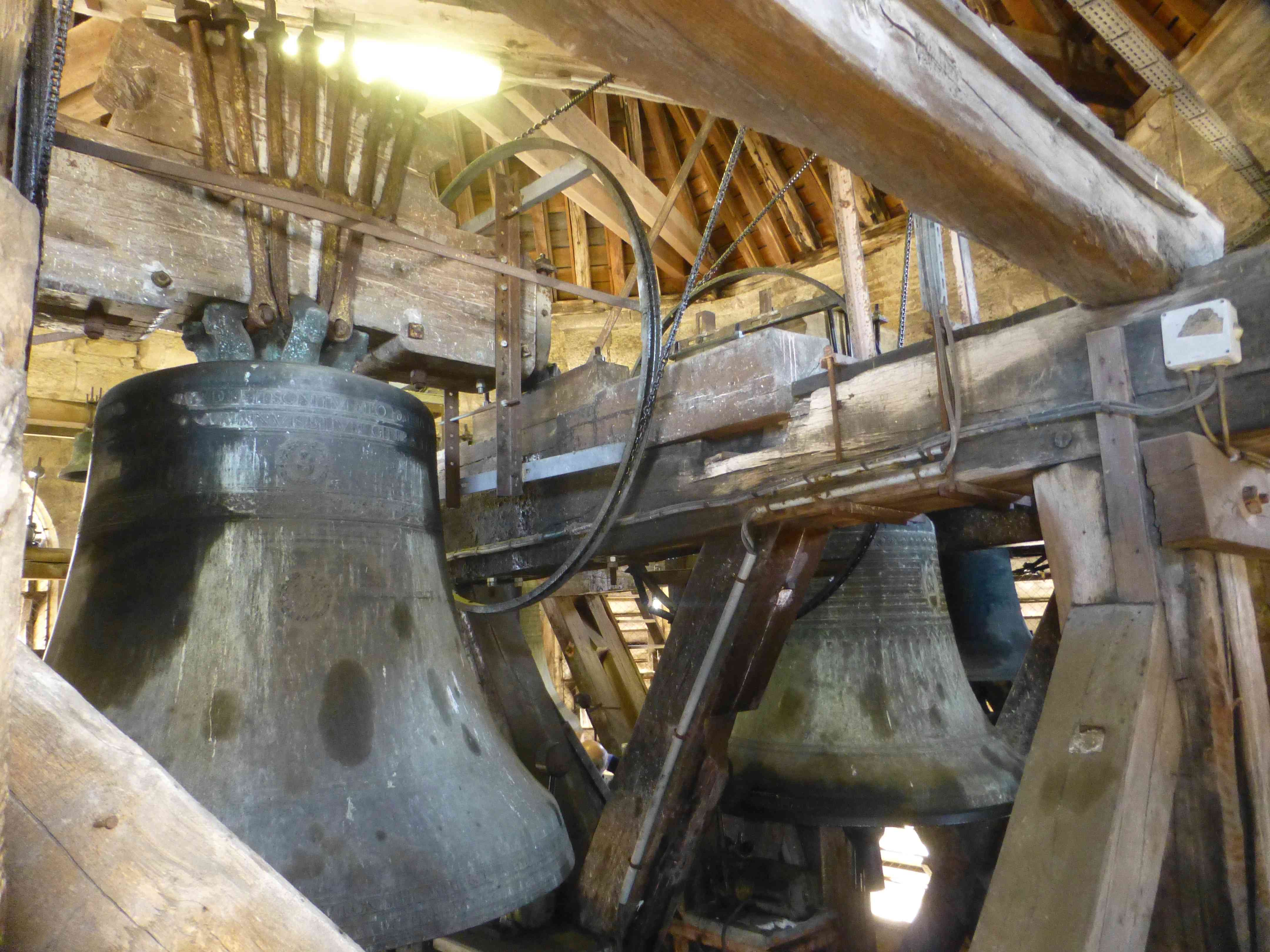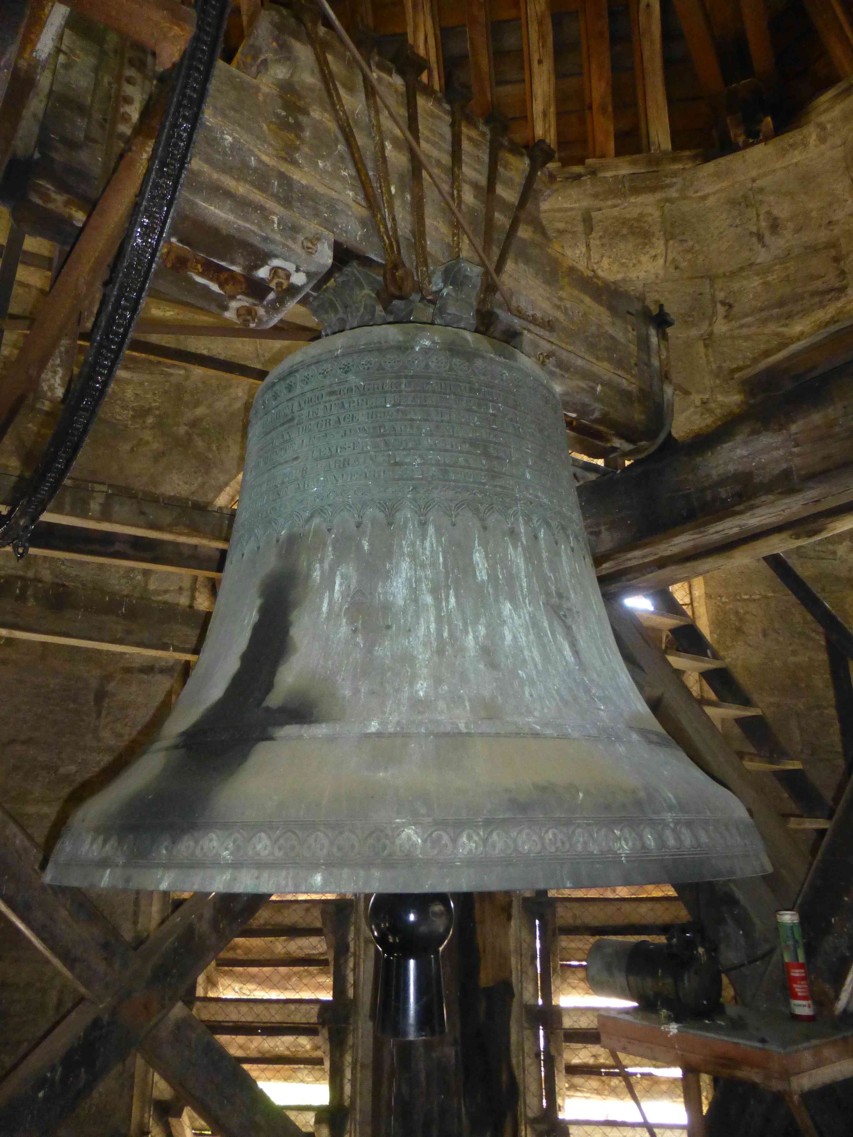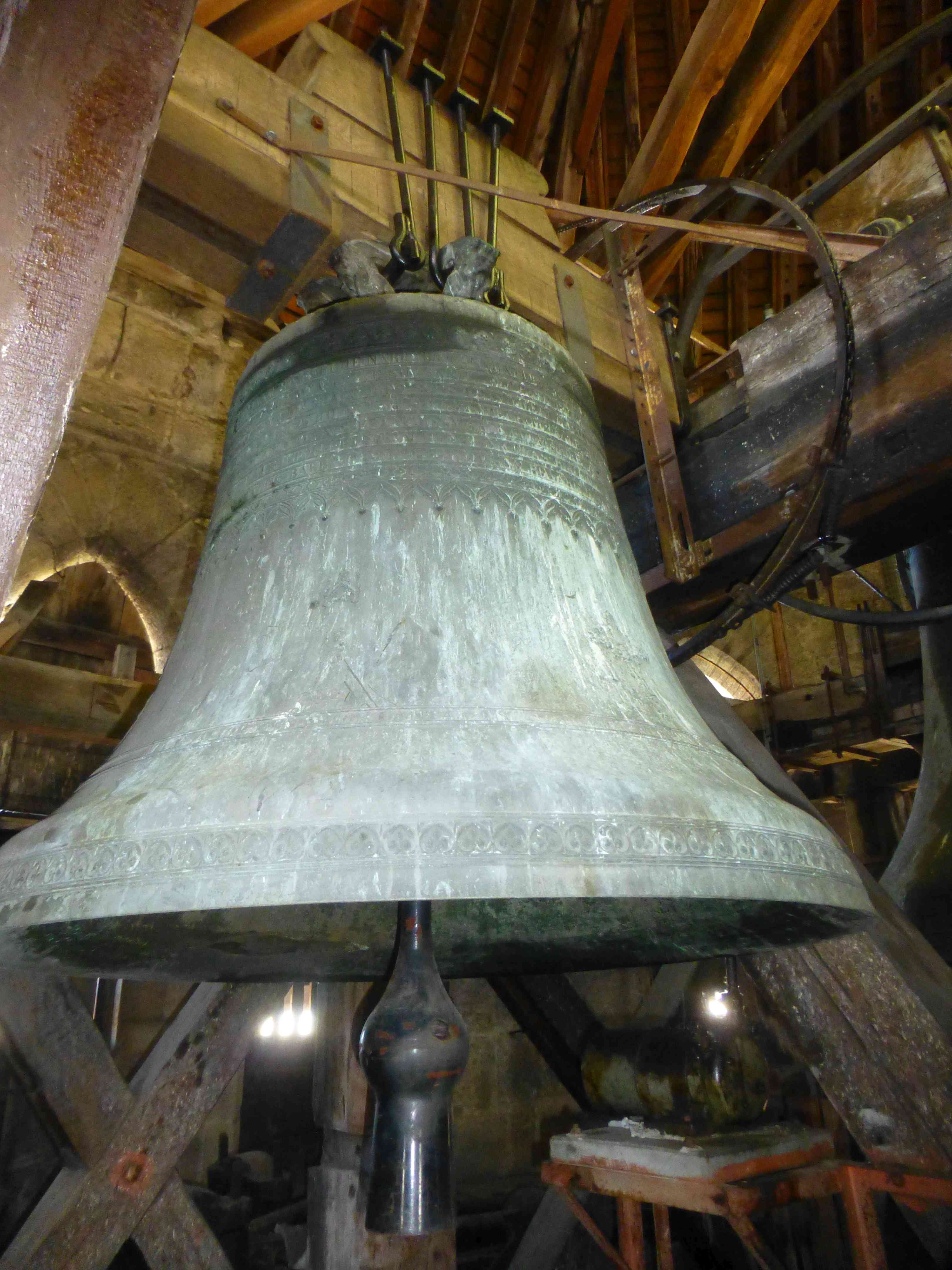 Les huit cloches que compte l’édifice sont installées dans le clocher s’élevant sur le transept, et non dans les deux tours de façade. Six d’entre elles peuvent sonner à la volée, et deux sont fixes. Ces deux cloches tintant les quarts datent de 1560. Ce sont donc les doyennes de la sonnerie. Elles étaient auparavant accompagnées d’une cloche fondue en 1583, également pour l’horloge. L’heure est sonnée sur le bourdon, fondu en 1572 dans un profil lourd. Il était accompagné de deux cloches fondues en 1814. En 1860, une nouvelle cloche, fondue par des lorrains, est ajoutée. La sonnerie ne prendra véritablement sa forme actuelle qu’en 1899 avec la fonte de quatre nouvelles cloches par Arthur Farnier, installé à Dijon. Il est fort probable que les deux cloches fondues il y a tout juste deux siècles aient quitté le clocher à ce moment-là en vue d’être refondues.
