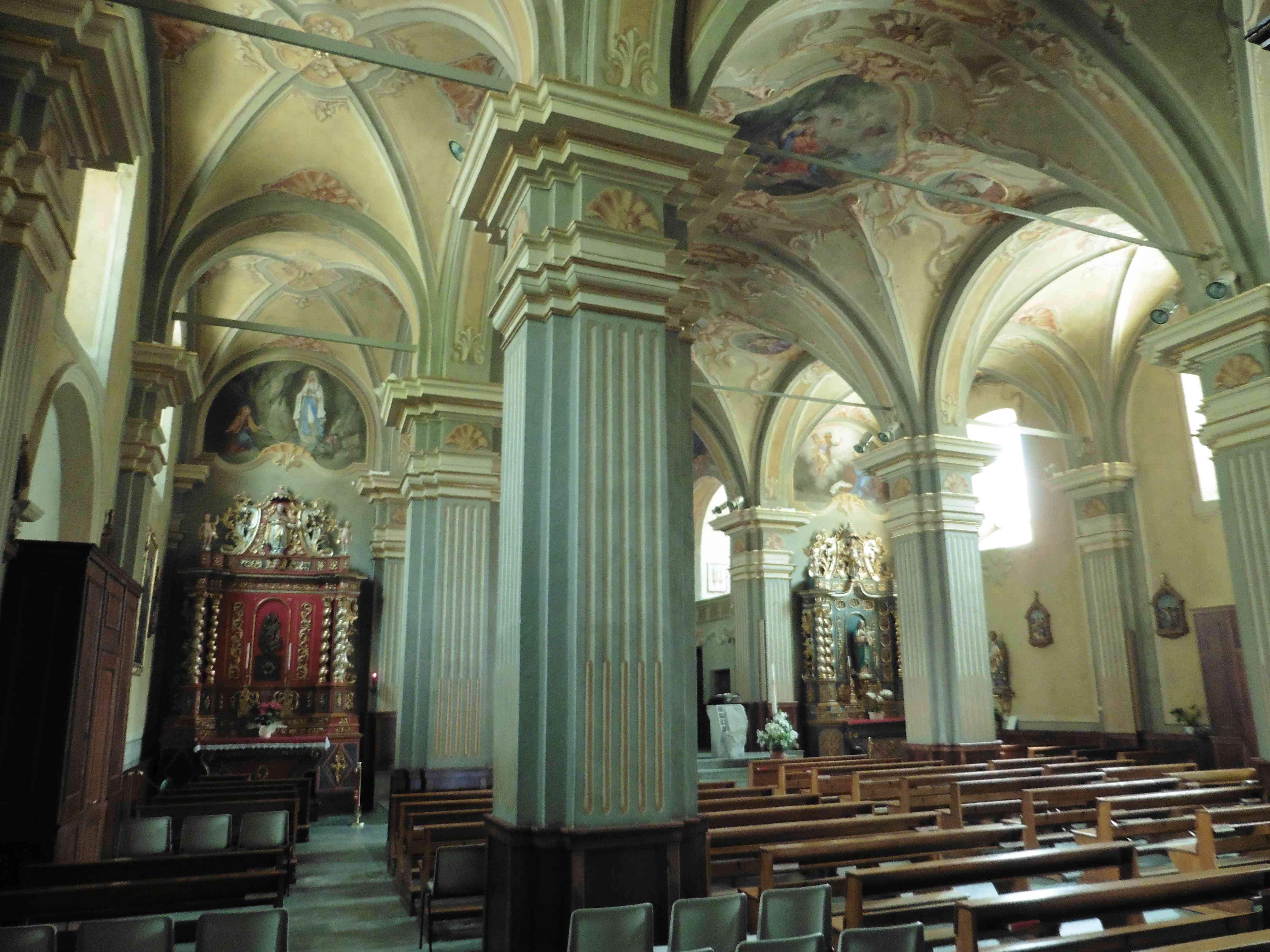 Dédiée à Saint Pantaléon, patron des médecins, l’église de Courmayeur figure parmi les joyaux de l’art baroque en Vallée d’Aoste. La première mention d’un sanctuaire remonte à 1227. De celui-ci subsiste la base de la tour-clocher. Le sommet date quant à lui du XVe siècle. Le lieu de culte actuel fut consacré en 1742 par Pierre-François de Sales, évêque d’Aoste, né à Thorens-Glières en Haute-Savoie, membre de la famille de Saint François de Sales. L’édifice est le fruit du travail de trois maçons du Valsesia, MM. Michel & Jean-Pierre Mourqua et Pierre Caristia. La structure sera renforcée entre 1997 et 1999. C’est lors de ces travaux qu’on se rend compte que l’église actuelle est bâtie sur un éboulement, celui-là même qui a ravagé le précédent lieu de culte. Le retable central est dédié à la Vierge du Rosaire. Les autels latéraux sont dédiés à Sainte Rita et au Sacré-Cœur. L’orgue, quant à lui, est entièrement neuf. Il a été construit en 2012 par le facteur d’orgues Vegezzi-Bossi.