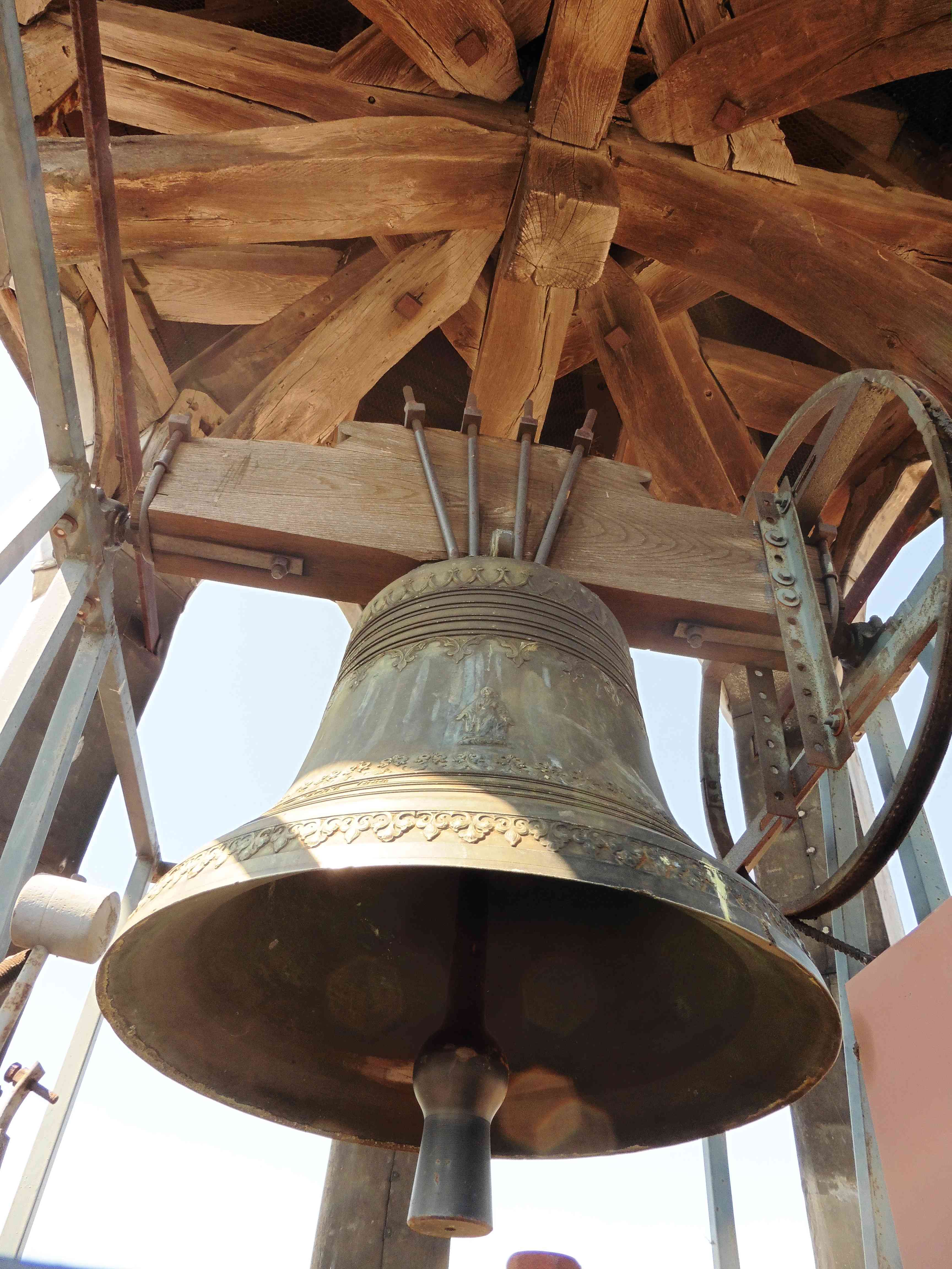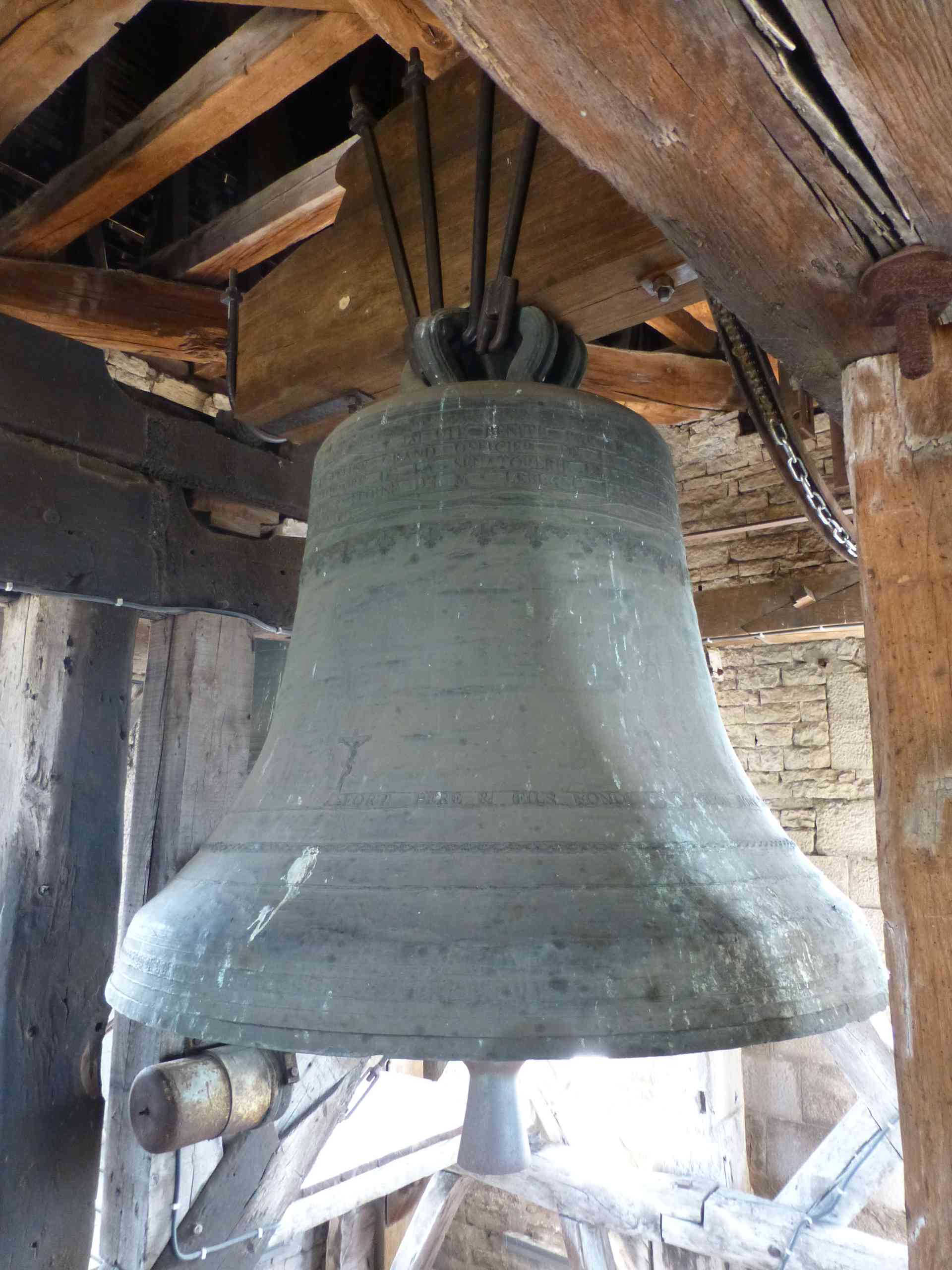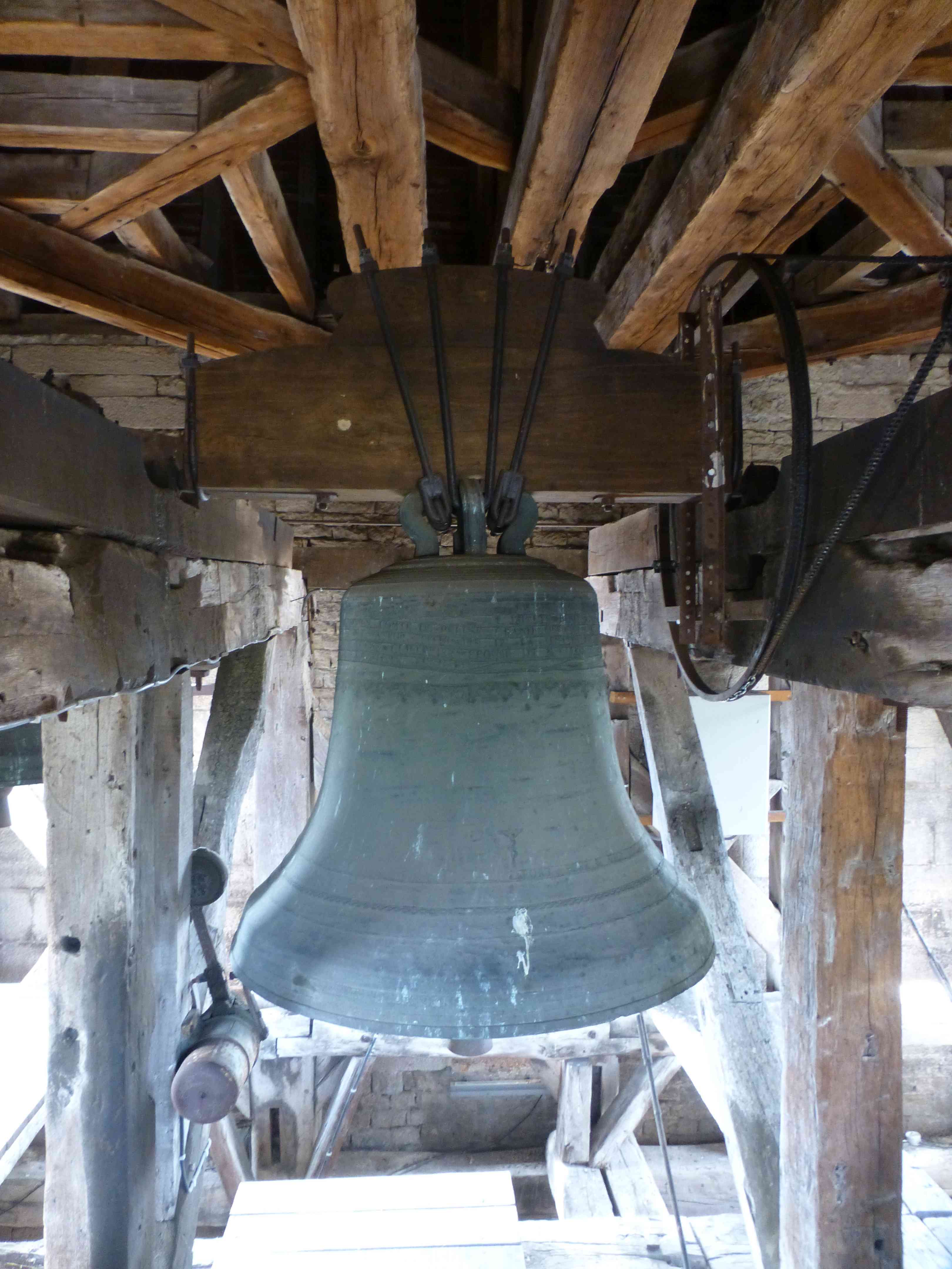 Le massif beffroi en bois, vestige de l’ensemble campanaire du XVIIIe siècle.