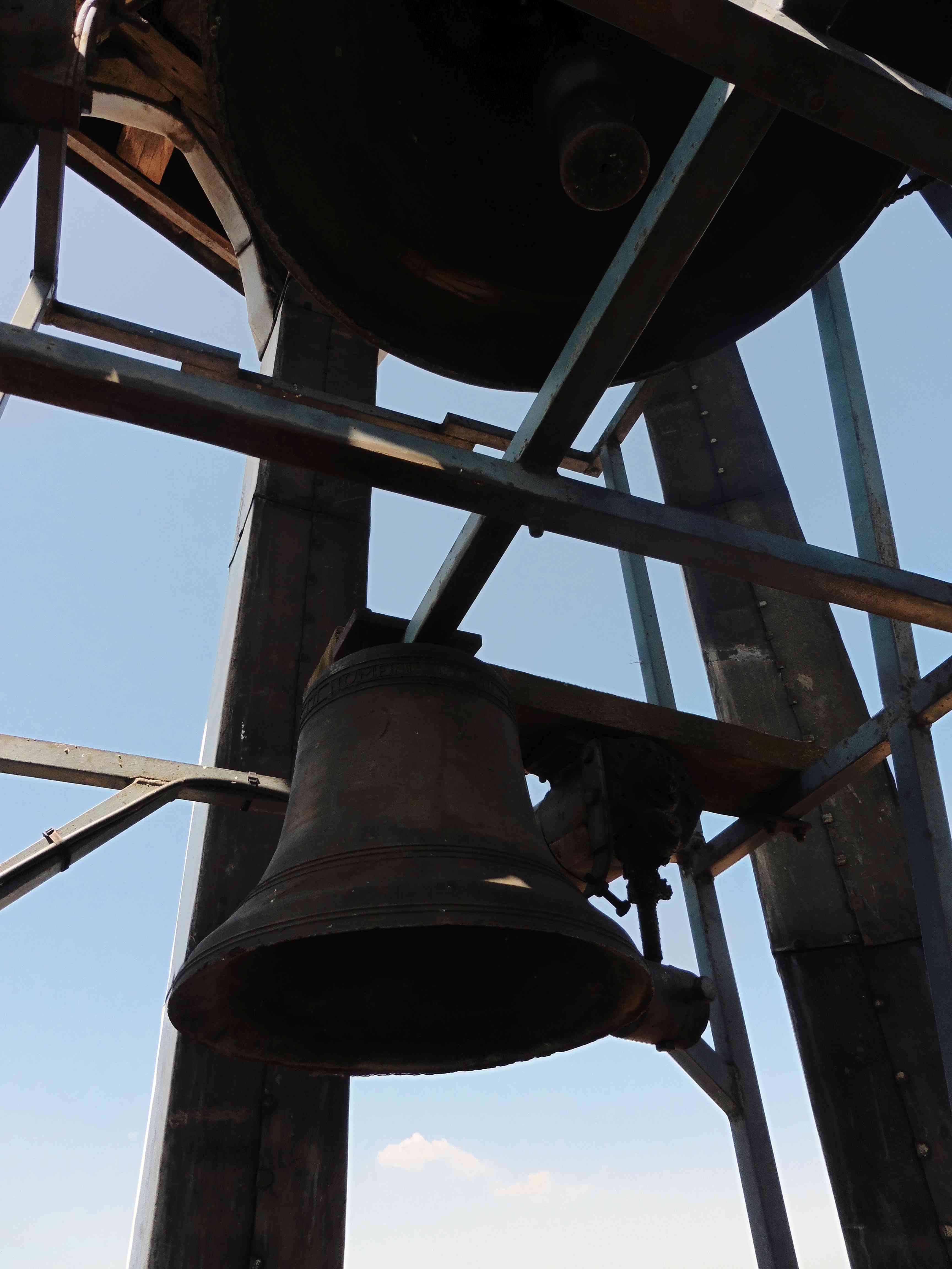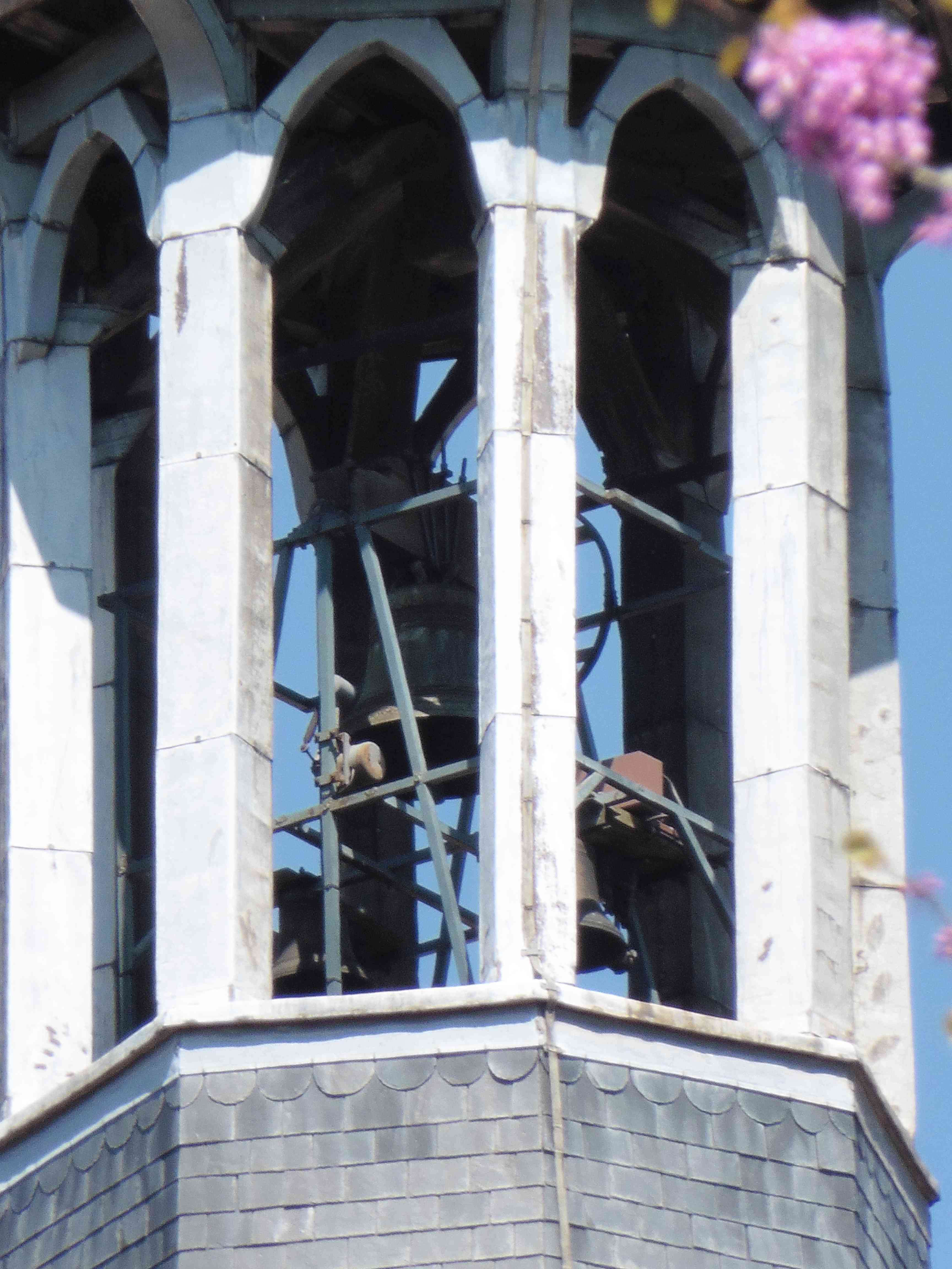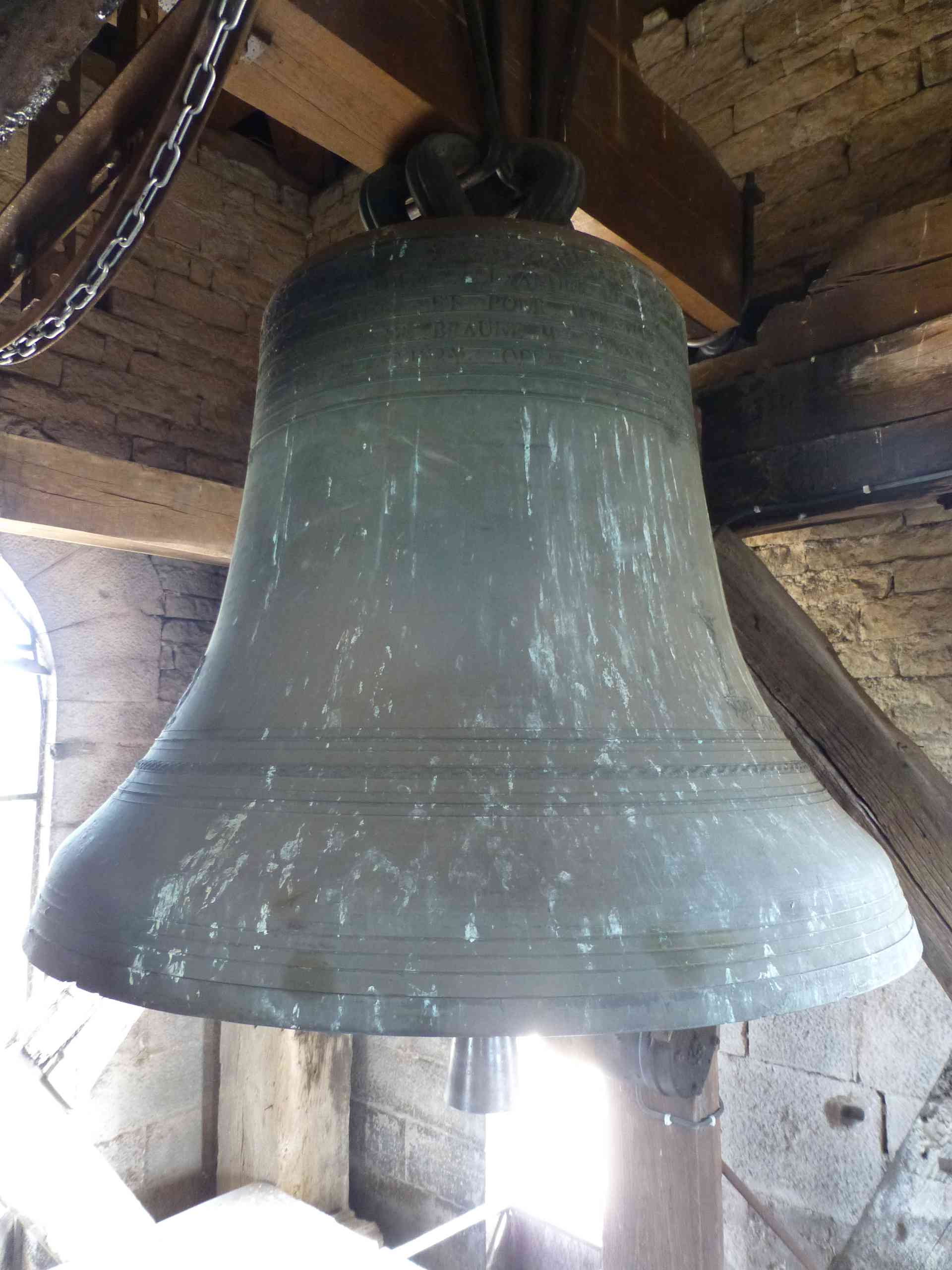 Le massif beffroi en bois, vestige de l’ensemble campanaire du XVIIIe siècle.