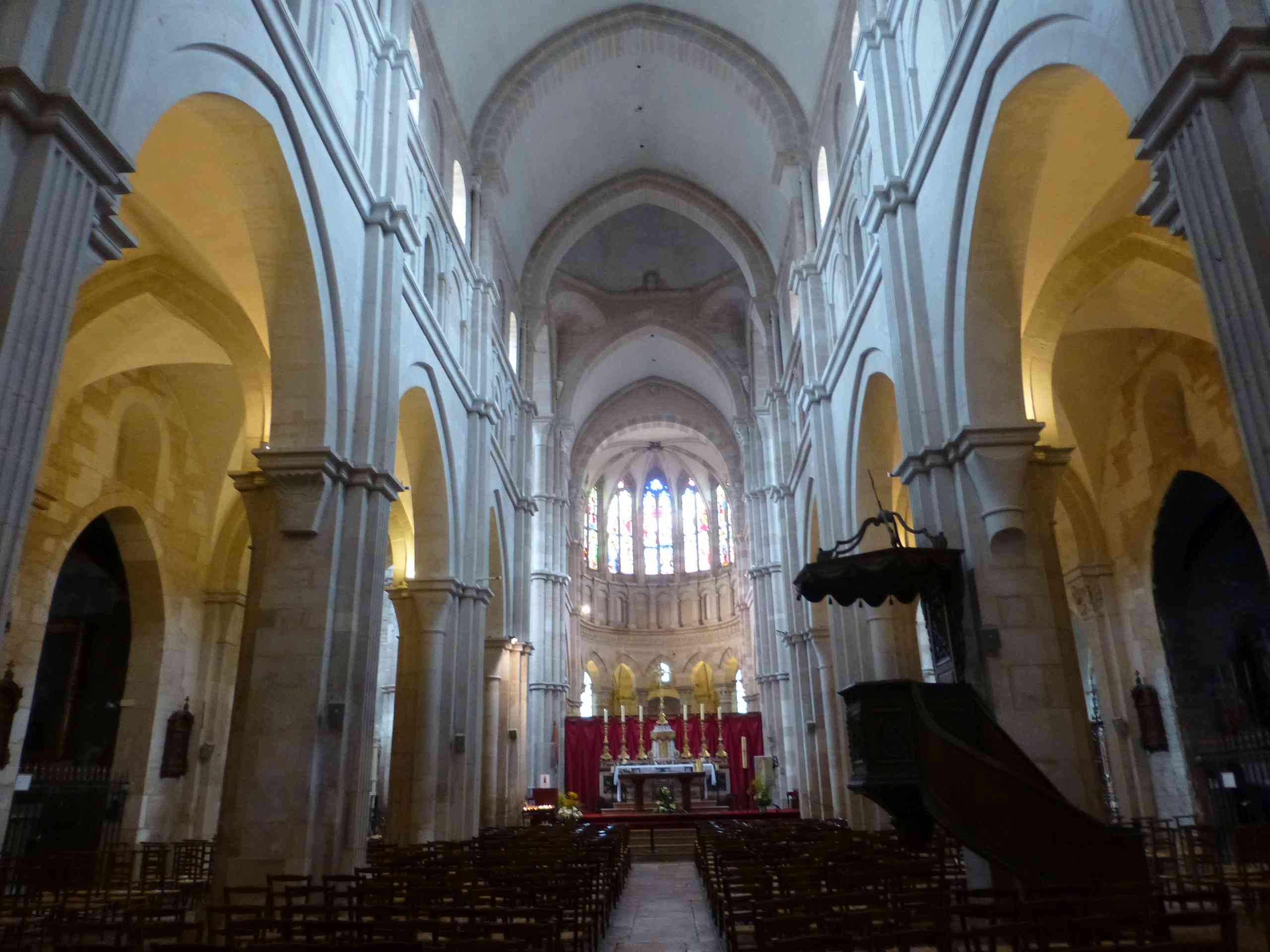 Contrairement à l’extérieur, l’intérieur est dans l’homogénéité la plus parfaite. La nef, ses bas côtés, son transept et son déambulatoire sont dans un style roman bourguignon.