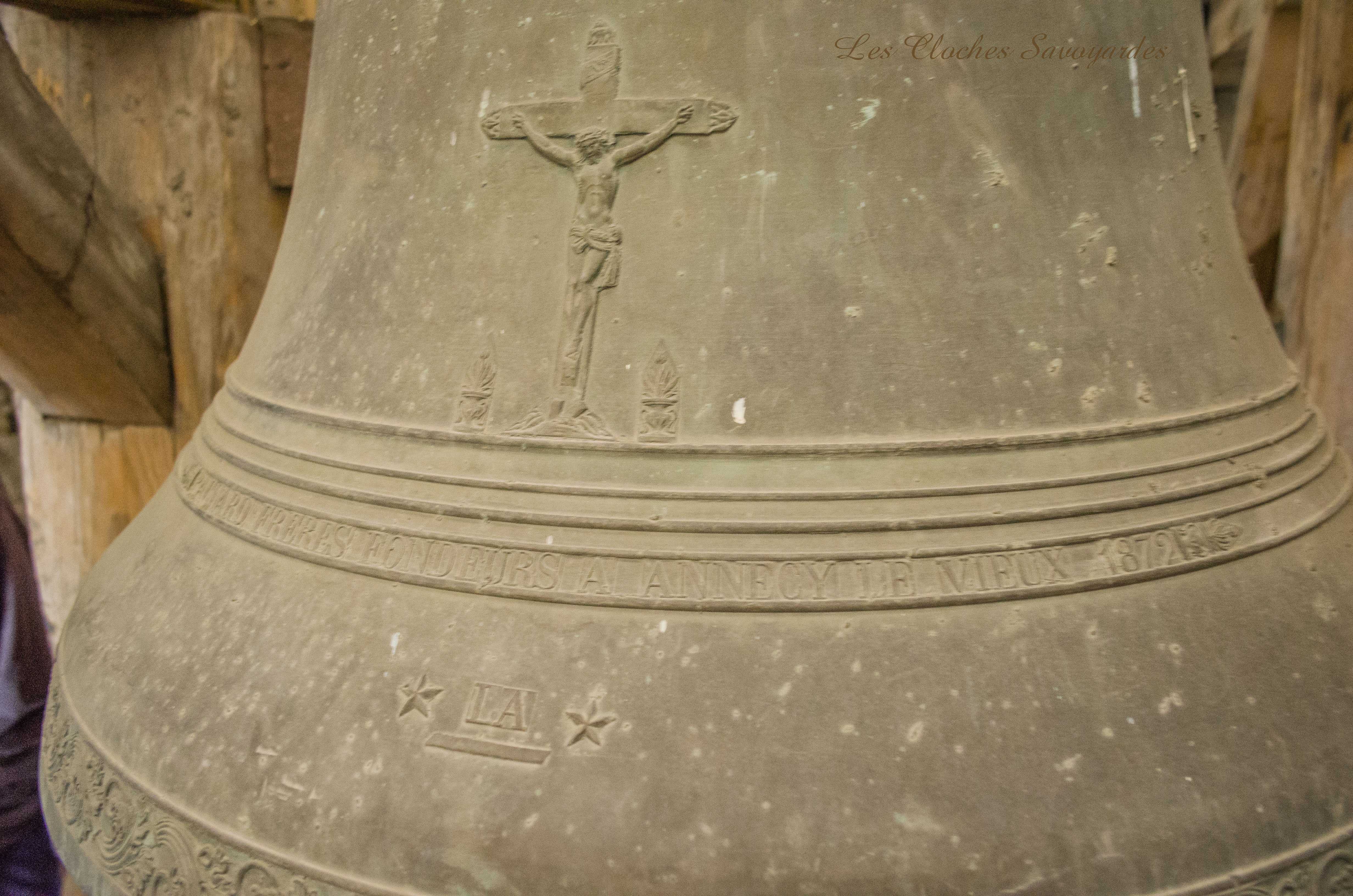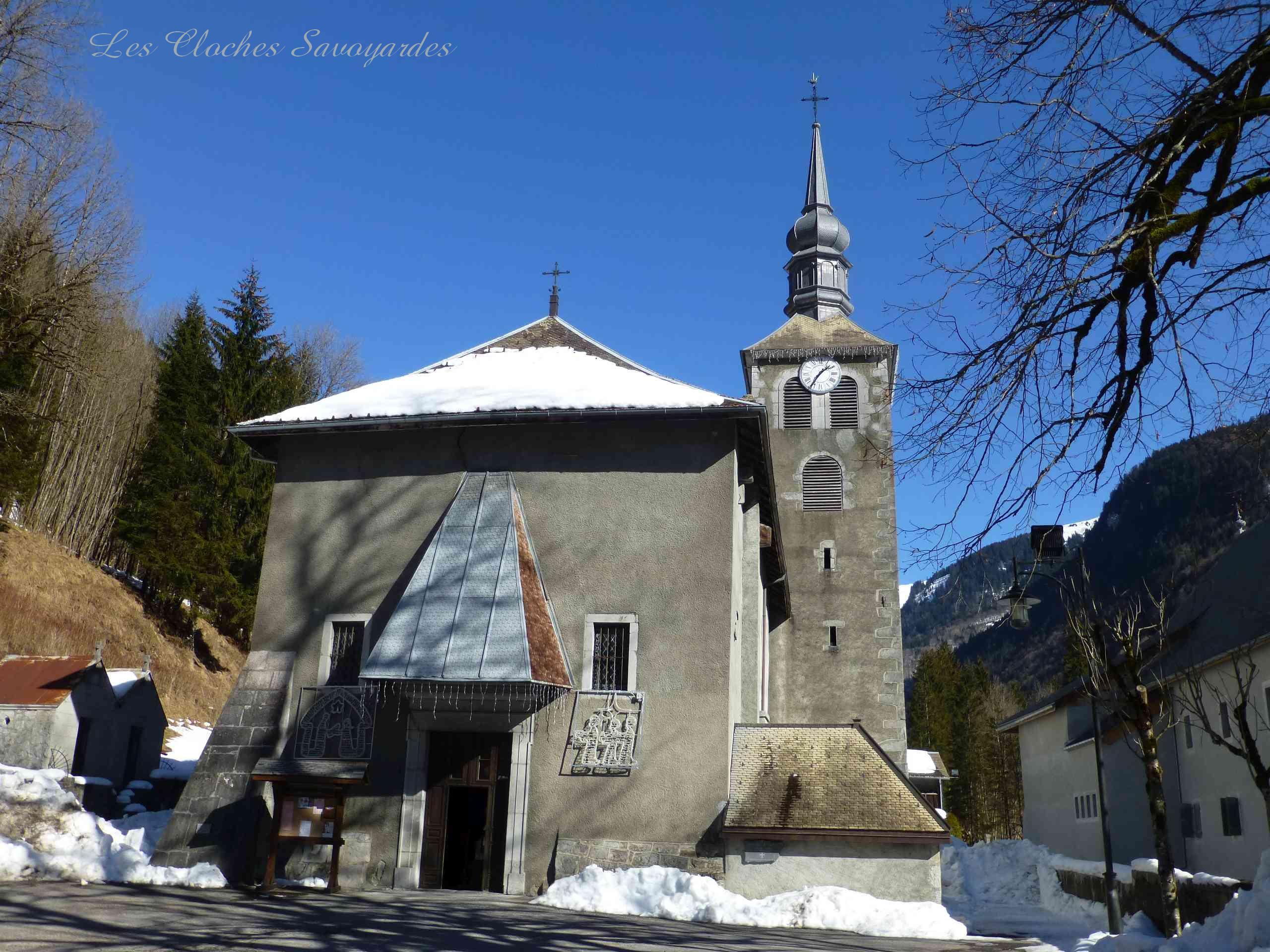Le clocher -parlons en- a été bâti dans les années 1820. Il abrite aujourd’hui quatre cloches fondues en XIXe siècle. La doyenne, cloche de la Confrérie du Très Saint Sacrement, porte la date du 8 décembre 1828 et le nom de Claude Paccard. Cette cloche, chargée de sonner les angélus quotidiens, est accompagnée de trois sœurs fondues en 1872 aux célèbres ateliers d’Annecy-le-Vieux. Elles unissent leurs voix pour annoncer les décès et lors des sépultures. La plus grande cloche, volontiers surnommée « bourdon », annonce les offices et salue baptisés et mariés.
