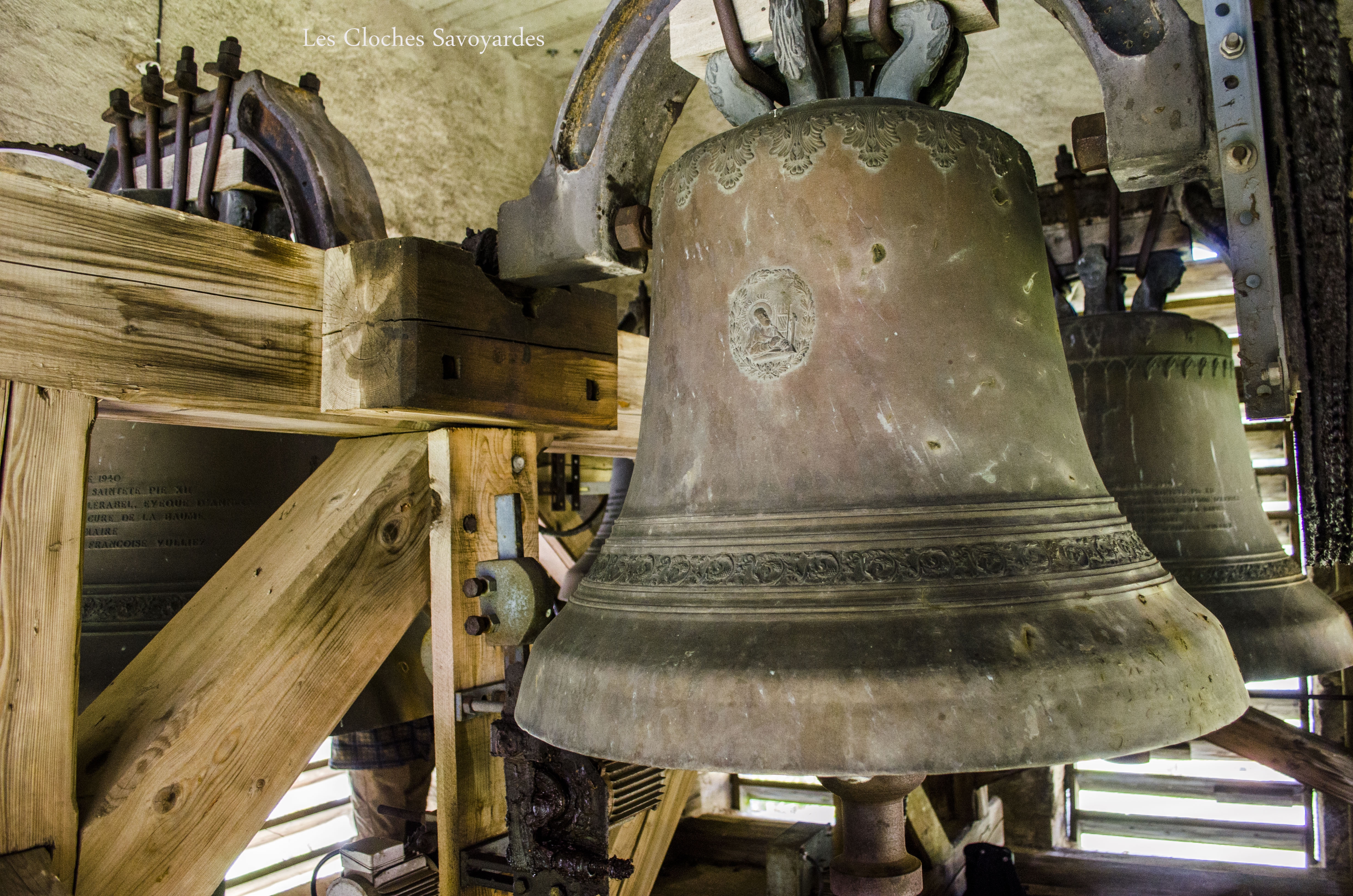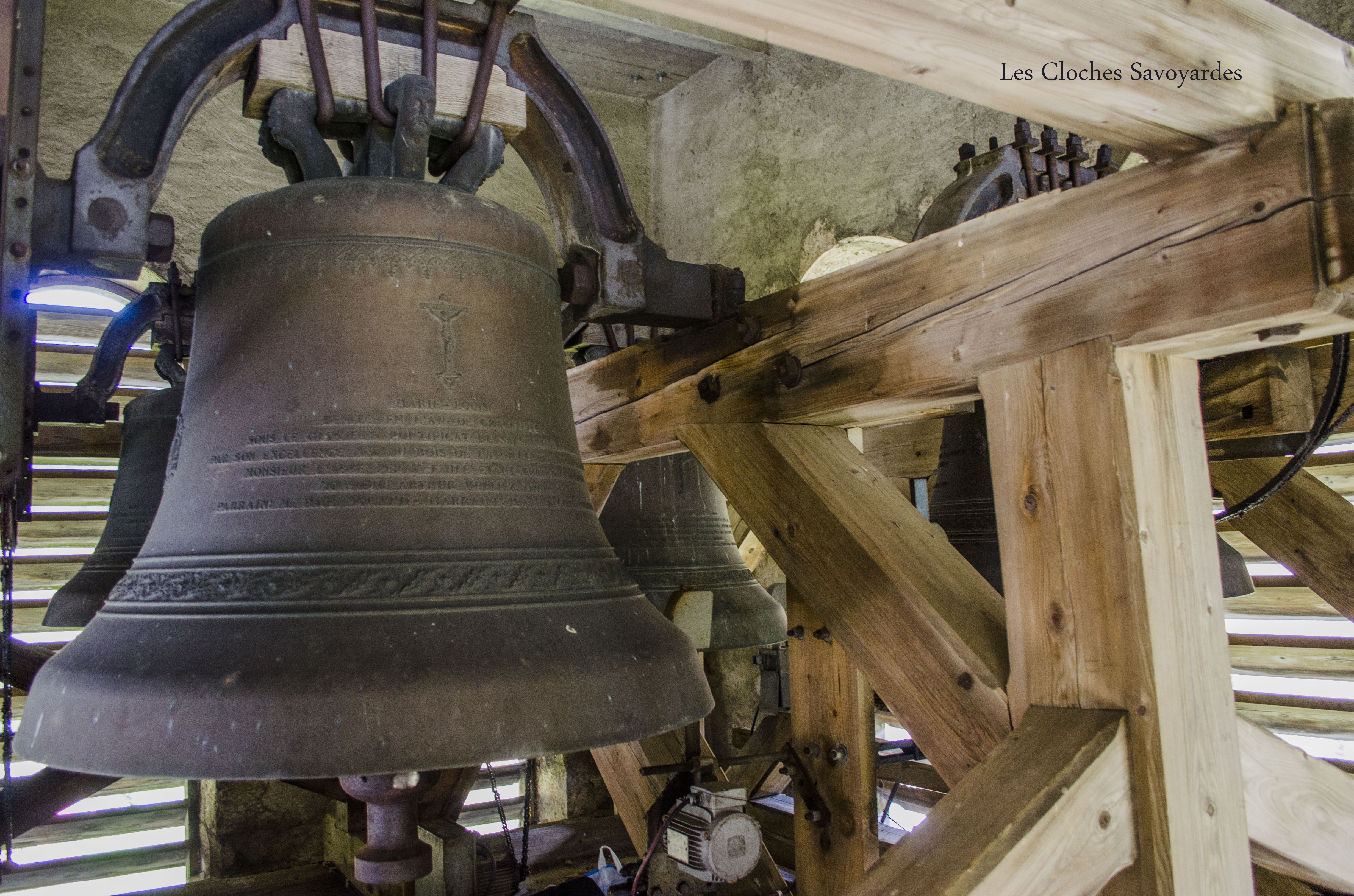 Depuis leur installation, « Agnès », « Marie-Louise », « Thérèse » et « Marie-Magdeleine » sont installées derrière les abat-sons. Entourées de béton, elles sont pourtant installées sur un beffroi en bois dont les croisillons sont typiques de la fonderie annecienne. Équipées avec des jougs en fonte, elles se balancent en « rétro-mitigé » ce qui donne une sonnerie plus lente et un petit peu plus aérienne. Les trous dans la dalle de béton laissent penser que les cloches n’ont pas été électrifiées immédiatement et que les sonneurs avaient moins de peine à les sonner que les anciennes, très certainement équipées pour une volée franche.