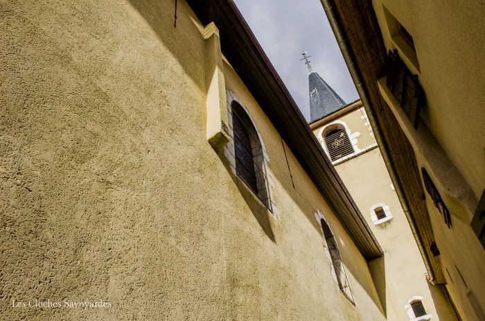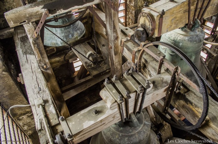 Ce sont aujourd’hui trois cloches qui logent dans le clocher de l’église Saint-Maurice des Marches. La tradition rapporte que la plus grande cloche actuelle provient de l’église Saint-Maurice-de-Murs, disparue sous l’éboulement en 1248. On raconte que la cloche fut miraculeusement découverte en 1598 et qu’elle aurait été placée au clocher immédiatement après. Cachée par la population lors de la Révolution, elle fut refondue par deux fois au XIXe siècle, par Eustache Meunier (de Chambéry) en 1883 puis par Georges & Francisque Paccard d’Annecy-le-Vieux en 1876 et 1886. En 1880, on note la refonte de la seconde cloche de l’ensemble.