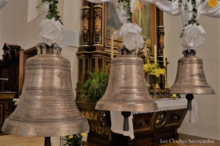 Dernier venu après l’orgue Callinet installé en 1836, le clocher abrite aujourd’hui six cloches. Mais il n’a pas toujours été aussi bien rempli. On sait qu’en 1647 deux cloches sonnent déjà dans le ciel hochstattois. Elles ont d’ailleurs été sauvées des réquisitions suédoises. Au nombre de trois à la Révolution, deux d’entre elles n’échapperont pas aux Révolutionnaires qui les briseront. En 1828, l’unique cloche pré révolutionnaire sera remplacée par trois cloches signées François Robert-Rollet, établi à Urville (Vosges). De cette fonte, seule l’une d’entre elles sonne encore aujourd’hui. En 1864, son fils François Robert-Hartmann livre la plus grande et la plus petite cloche de l’ensemble campanaire. Dès lors, cinq airains se partagent le beffroi en bois. Mais en 1917, les cloches sont réquisitionnées par les allemands et sont emmenées avec 1800 autres au « dépôt campanaire » de Francfort. En 1919, seules trois cloches, retrouvées intactes, reprendront place dans le clocher. Les autres sont hélas perdues à jamais… En 2017, à l’occasion du centenaire de la réquisition, un projet voit le jour : redonner au clocher sa voix d’antan. Grâce à de généreux donateurs, ce ne sont pas deux mais trois cloches qui seront fondues par l’entreprise strasbourgeoise d’André Voegelé. L’évêque émérite de Saint-Dié (Vosges), Mgr Jean-Paul Mathieu, procéda à la bénédiction des trois nouvelles cloches devant la population locale… un événement rare, qui ne devrait pas se reproduire de sitôt dans cette bourgade alsacienne !