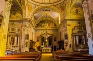 L’intérieur de l’église est plutôt chaleureux, comme nombre d’églises néoclassiques sardes de la région. On note une multitudes de fresques dans l’édifice, surtout autour du dôme, véritable puits de lumière. Au sommet du chœur trône le repas de la Cène, au soir du Jeudi Saint. Les autels latéraux sont dédiés à la Vierge Marie et à saint Pierre.