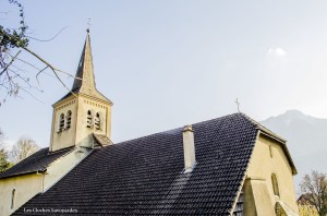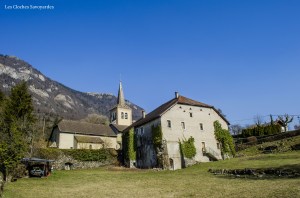 Le clocher abrite aujourd’hui trois cloches. Ses murs en béton peuvent laisser entendre qu’il a été restauré au XXe siècle. Probablement en 1961. Nous y reviendrons. La plus grosse cloche porte la date de 1607. De facture inconnue, ses inscriptions prêtent louage à saint Pierre, à saint Paul et à saint Théodule, premier évêque du Valais (CH) particulièrement célébré ici. La cloche est également marquée du nom du Noble Claude Pobel, syndic et Seigneur d’Ayse. Cette inscription n’est pas sans rappeler une jumelle, également fondue en 1607 pour l’abbaye d’Entremont, et marqué du nom de Mgr Thomas Pobel, bonnevillois évêque et abbé d’Entremont. La cloche d’Ayse ne possède pas de signature et aucune similitude visuelle avec celle d’Entremont. Saura-t-on un jour le fondeur de cette cloche ? Dernier détail amusant : nous serions tentés de lire la date « 1507 ». Cependant, la baronnie des Pobel est élevée en 1580. Claude Pobel et sa femme, Gabrielle Vionnet, également citée sur la cloche, le sont aussi dans les archives jusqu’en 1617. On peut encore argumenter avec le style calligraphique de la cloche : l’écrire gothique n’est pas présente ici. En 1507, il aurait été impensable de ne pas livrer une cloche sans ses inscriptions, déjà désuètes en 1607. Si l’honorable cloche a traversé les âges, il n’en a pas été autant de ses petites… ou grandes sœurs ! En 1871, une commande est passé par la paroisse d’une grosse cloche aux frères Beauquis de Quintal. Cette cloche, pesant 1’107 kilos fêle après presque un siècle de bons et loyaux services. En 1961, elle est remplacée par deux cloches plus petites, bénies les jour de Pâques par Mgr Auguste Cesbron, évêque d’Annecy. Ces deux cloches arborent, outre le Pape régnant (saint Jean XXIII) et l’évêque, les noms du curé de la paroisse (père Paul Morel-Vulliez) et du maire (M. Justin Vuarchex). Les parrains et marraines des cloches représentaient la chorale paroissiale pour la plus grande, et l’action catholique pour l’autre. Permettez-moi de citer le représentant des parrains de la seconde : René Rosset, présent lors de ma venue ! Quelle émotion de visiter le clocher en compagnie d’une figure de ce village, élu pendant 55 ans (d’abord conseiller, puis adjoint avant d’en devenir le maire, de 2004 à 2008). Il a souhaité, à 90 ans, revoir une fois « sa » cloche, qui annonce encore fièrement les nouveaux baptisés. D’ailleurs, chaque cloche à son rôle : la moyenne sonne les angélus matin, midi et soir. La plus grande, elle, convoque à l’office divin. Les trois cloches sonnent ensemble pour les sépultures, comme il est coutume dans la région.