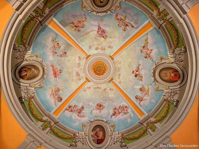 Parmi ces disparues, l’une connut une véritable odyssée ! Arrivée à Annecy pour y être brisée, elle fut récupérée par la paroisse de Gevrier dès 1796, avant d’être aussitôt supprimée et rattachée à la paroisse Saint-Maurice d’Annecy. Les habitants de Dingy, informés que leur ancienne cloche avait été récupérée ailleurs, tentèrent de la reprendre, mais sans succès. Après avoir été confiée en 1825 à Saint-Maurice pour y être refondue, cette cloche — une belle pièce de 1639 pesant 174,5 kilos, dédiée à saint Étienne — fut longtemps réclamée par sa paroisse d’origine, recréée en 1869. Mais le mal était fait. Elle avait été parrainée par le comte Bernard de Menthon et sa mère Claudine de Michaille, tous deux étroitement liés à Dingy, leur dernière demeure, et nullement à Gevrier ! Si Dingy n’avait pu récupérer cette cloche, la paroisse s’en procura une autre au dépôt d’Annecy. Mais elle s’avéra rapidement fêlée. Dès 1802, les élus reprirent le projet à bras-le-corps et commandèrent à Jean-Baptiste Pitton une cloche de 30 quintaux « pour servir de timbre à l’horloge », pour la somme considérable de plus de 5 000 francs. Le parrain fut l’abbé Aimé Bollard, curé de Dingy, et la marraine Anne-Marie Genoux, veuve Tournier d’Annecy. Il s’agit de la plus grosse cloche connue du fondeur, en tout cas l’une de ses œuvres majeures !