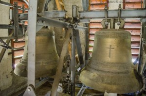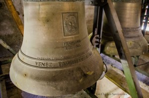 Et ils ont eu raison ! Car aujourd’hui, le clocher a retrouvé une voix puissante. Il faut dire que son patrimoine campanaire est d’exception. Sur les quatre cloches, la plus petite et la plus grande sont également classées Monuments Historiques ! Elles ont été fondues en 1688 par la famille Vallier. Leurs descendants ont été présentés maintes fois sur ce même site, surtout en collaboration avec la famille Gautier. Ces deux familles étaient en collaboration au lendemain de la Révolution, car toutes deux natives de la région briançonnaise (Hautes-Alpes). Terre savoyarde oblige, diront certains, les deux cloches intermédiaires proviennent des non moins célèbres fours de la fonderie Paccard. La plus grande a été livrée en 1892 par Georges & Francisque, de la 3ème génération, alors installés à Annecy-le-Vieux, et la plus petite par Claude & Jean-Pierre, la génération précédente, installée à Quintal. Une curiosité musicale vient s’ajouter. Si on omet la justesse musicale plus qu’approximative dans cet ensemble, on notera que les deux petites résonnent comme des « répliques » des deux grandes. La plus grande et son grand âge peut paraître comme… atypique ! Cela s’explique par la perte d’un fragment de celle-ci, on ne sait ni pourquoi ni comment (sans doutes lors de précédents travaux, ou à la Révolution?) rendant ainsi un son ténébreux, mais pas si rare, en prenant pour exemple la plus grande cloche de Lutry ou un des bourdons de la cathédrale Saint-Etienne de Sens, en Bourgogne. Enfin bref, on pourra trouver à cette sonnerie tous les charmes du monde… c’est un de mes coups de cœur de l’année !