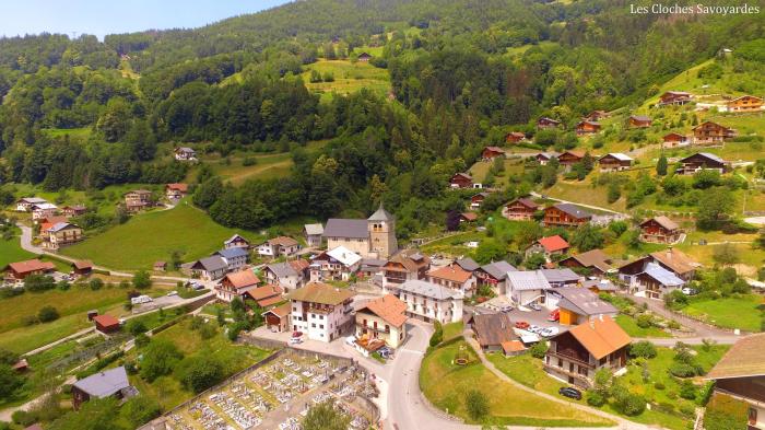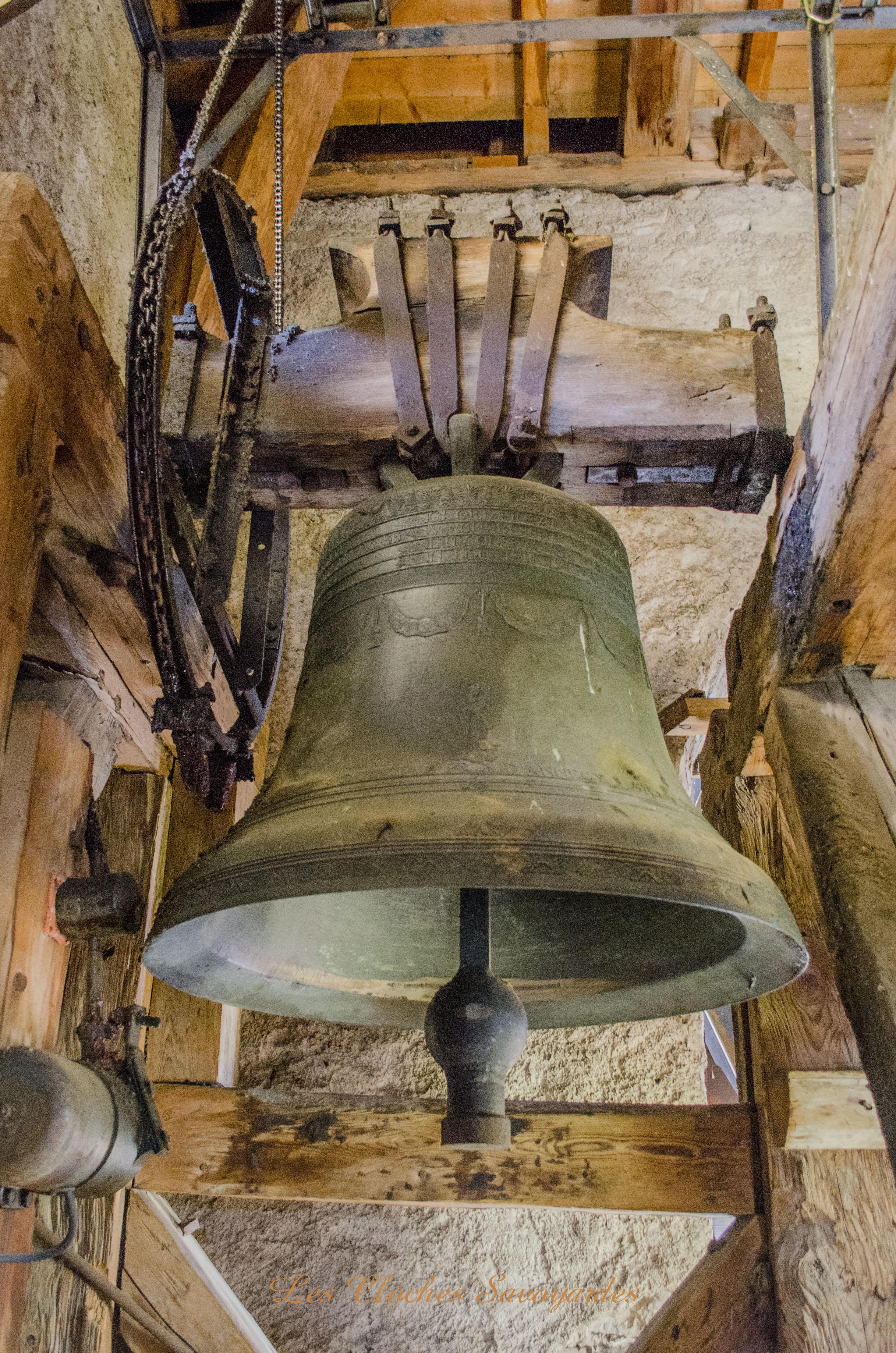 Après vous avoir présenté des ensembles notables telles que la Savoyarde, plus grosse cloche de France ou encore la cathédrale de Dijon et son carillon, l’un des plus grands de France, c’est aujourd’hui une sonnerie modeste que je vous présente, mais son caractère hétérogène est des plus intéressants. Deux cloches, de deux fondeurs. La plus grosse date de 1836, c’est la plus récente. C’est une cloche des frères Paccard de Quintal (deuxième génération). Elle montre tout le savoir-faire acquis par cette célèbre famille au bout de quarante ans de fonte. Elle tient compagnie à une cloche plus ancienne. Elle a été offerte par le père Bouvet, premier curé de la paroisse. Elle est antérieure à la Révolution et porte le sceau de Jean-Daniel Dreffet, fondeur maintes fois présenté sur ce site.