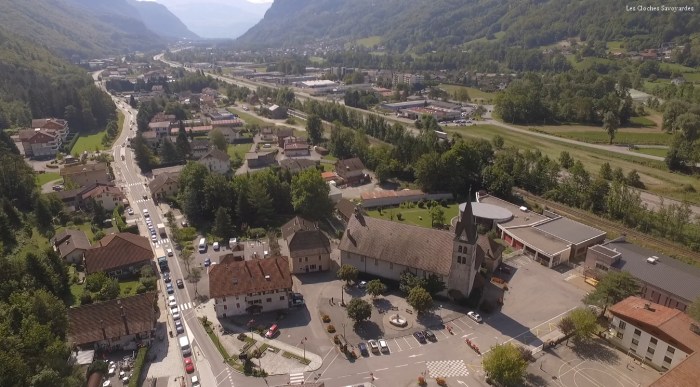 A l’intérieur de ce clocher logent quatre cloches. Toutes datées de 1824, il est certain qu’elles en remplacent d’autres, fondues avant la Révolution. Hélas, aucune archive connue ou aucun indice -autres qu’une logique certaine- nous permet de les évoquer. Les quatre cloches actuelles sont l’oeuvre de deux fondeurs originaires de la vallée de la Clarée -près de Briançon- : Louis Gautier, accompagné des frères Vallier. Curieusement, seule la plus grande porte les deux patronymes. Les autres ne portent que la mention de Louis Gautier dans une signature très sobre « GAUTIER ME FECIT 1824« . De grands travaux eurent lieu durant l’électrification : pose de nouveaux jougs et beffroi en acier, changement partiel de battants et tournage de la seconde cloche d’un quart de tour (afin d’éviter une éventuelle fêlure par l’usure). Cette cloche possède aujourd’hui un moteur et un battant neufs. Toutes les cloches portent des traces d’accordage plus ou moins visibles, preuve ultime que la sonnerie a l’harmonie discutable encore aujourd’hui a été corrigée. Cependant, les cloches n’ont pas quitté le clocher car ces traces montrent que l’opération a été réalisée au burin et non avec une machine qui gratte délicatement l’intérieur de la cloche. Si les trois petites cloches égrènent distinctement le motif dit du « Gloria« , la plus grande cloche demeure aujourd’hui un quart de ton trop haute. Mais qu’importe puisque cette dissonance se révèle être un atout supplémentaire pour cette sonnerie, même si il est évident qu’elles ne pourront se retrouver dans un carillon à l’avenir !