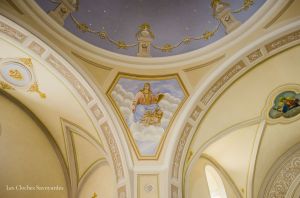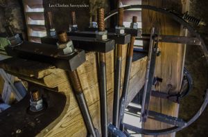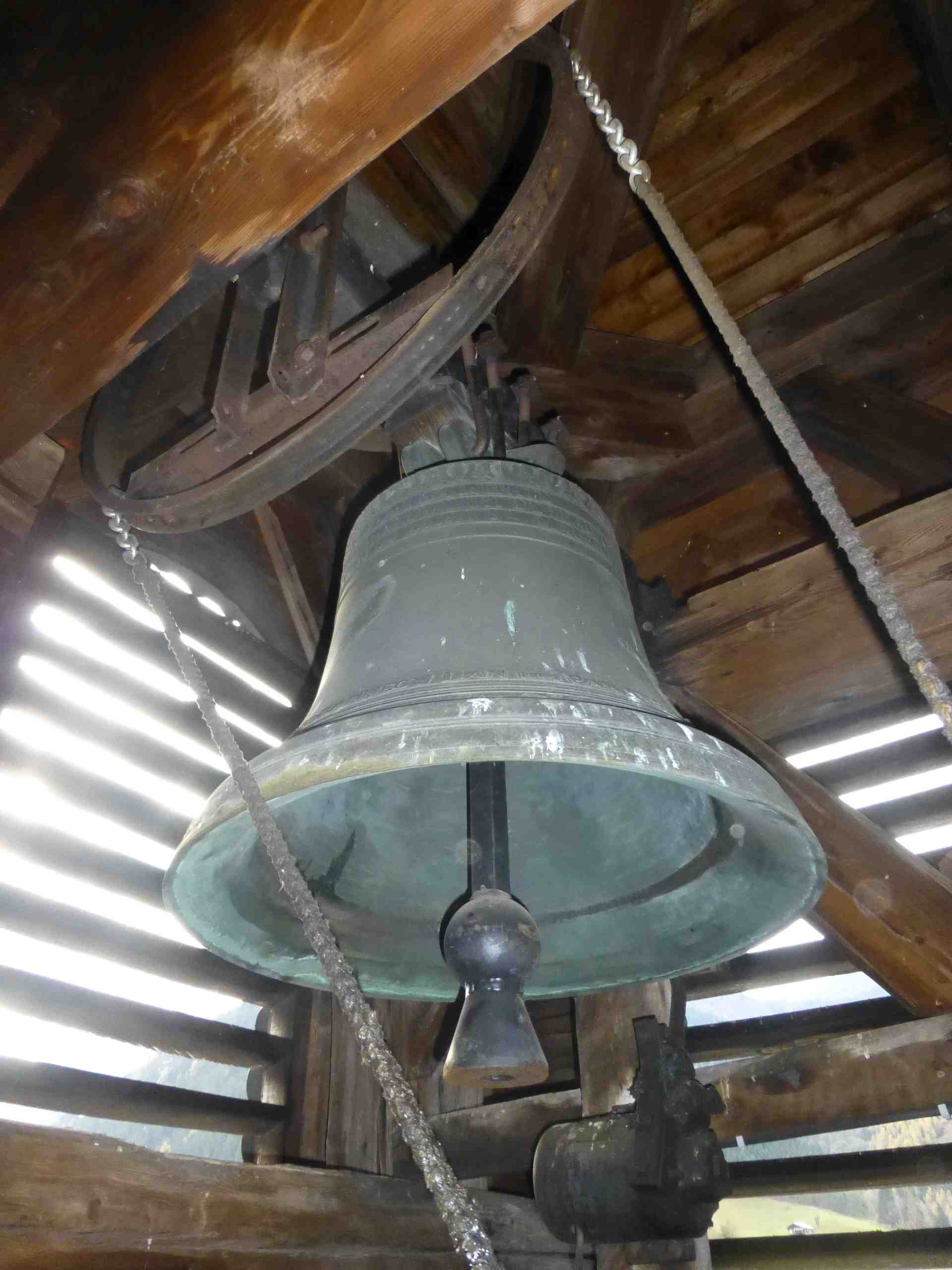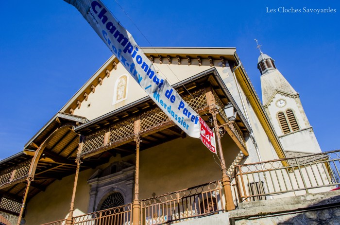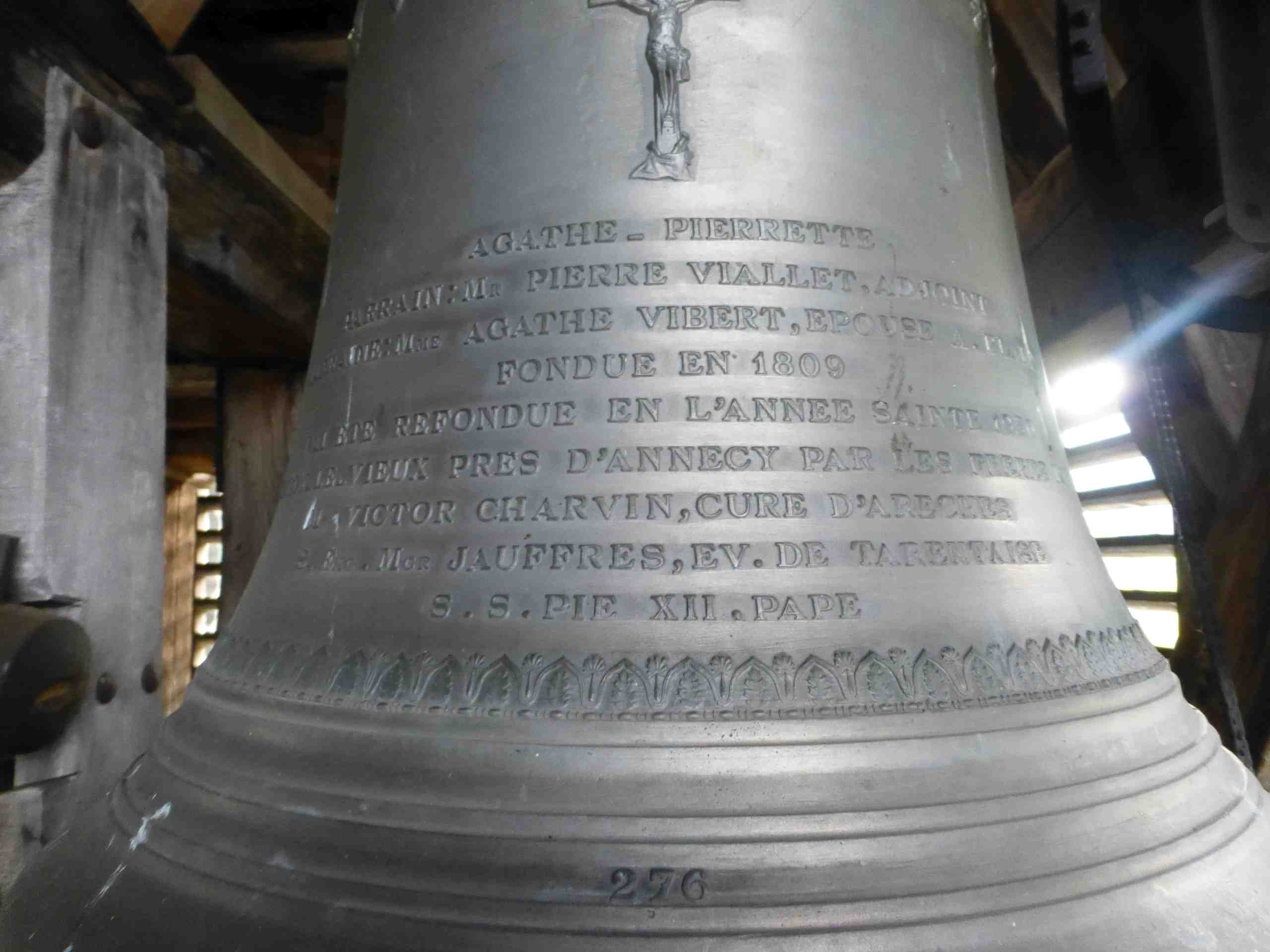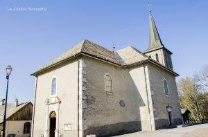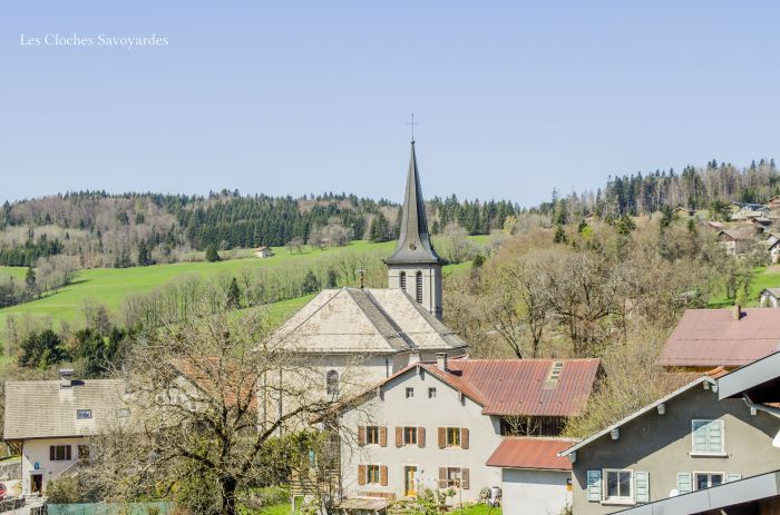 En 1808, une cloche est installée au clocher de l’ancienne église. A la fin de l’été 1833, François Bulliod de Carouge est appelé pour réaliser deux cloches. Il sera à nouveau sollicité par les autorités en 1835 pour refondre celle de 1808, baptisée « Joséphine« . Quelques décennies après, la sonnerie est jugée peu harmonieuse. Deux cloches sont refondues par les établissements Paccard d’Annecy-le-Vieux : la grosse et la petite. « Françoise-Louise » datée du 24 août 1833 est la seule rescapée. « Célestine-Pie » et « Augustine-Catherine » rejoindront donc le clocher et seront bénies le 8 février 1872. Mais une troisième cloche plus modeste « Julie-Thérèse » est arrivée. En effet, l’abbé Chardon, curé de Marignier et natif de la commune, tenait à offrir sur ses deniers une plus petite cloche. Depuis 1956 et l’électrification du clocher, cette petite cloche est hélas réduite à un usage restreint. En raison de ses modestes dimensions, elle n’a pas été ajoutée à la volée de ses trois grandes sœurs. Mais lors des carillons (baptêmes, mariages) on peut deviner son « sol aigu » cristallin. Récemment, la fonderie Paccard, en charge du clocher, a installé trois nouveaux battants pour les trois cloches de volée. Les brides de fixations ont également été changées. La petite cloche a reçu un nouveau marteau de tintement.