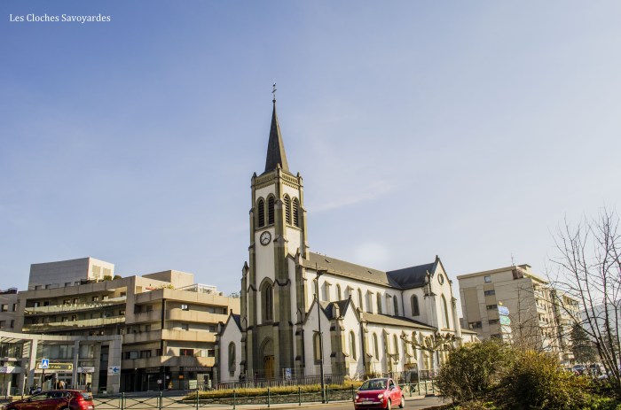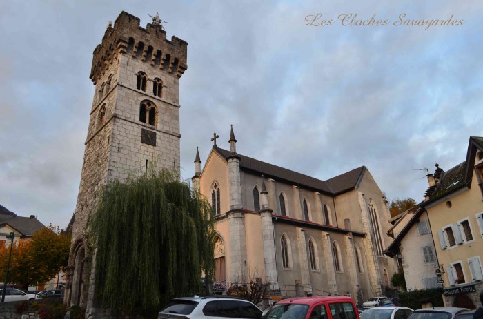 Cl.1 : Frères Paccard, 1843 – 135,5 cm, 1’500 kilos – Ré 3 -5 Cl.2 « St Georges » : G&F Paccard, 1889 – 107,4 cm , 700 kilos – Fa Dièse 3 +1 Cl.3 « St François de Sales » : G&F Paccard, 1889 – 90 cm, 420 kilos – La 3 ±0 Cl.4 « Ste Anne » : G&F Paccard, 1889 – 67 cm, 180 kilos – Ré 4 +5
