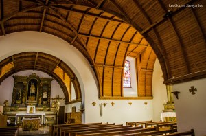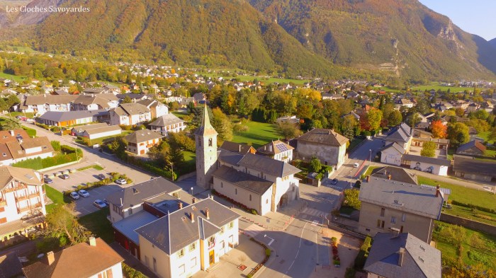 L’église, dédiée à la Vierge Marie, remonte en effet au XIème siècle, en témoigne l’abside et le clocher roman. Cette architecture était en effet en vogue dans la région. Si l’édifice a été profondément remanié au XVIIème siècle puis en 1835, l’abside demeure intacte et est aujourd’hui protégée. On sait par exemple que, jusqu’à la dernière restauration, la nef était « lambrissée » avant d’être voûtée. De la simple nef, nous sommes passées à une église en forme de croix latine avec l’ajout de deux chapelles latérales. Au XVIIème siècle, l’abside en cul de four est séparée de l’édifice par un retable baroque, encore présent de nos jours. Dès lors, cette dernière sert de sacristie, avant qu’une seconde soit construite à droite du chœur. Une curiosité reste à souligner : l’entrée de l’édifice se fait par le côté, et non par le clocher, qui, jadis, remplissait la fonction de porche. La raison est simple : l’église était trop facilement inondable par le clocher (il fallait descendre pour pénétrer dans le sanctuaire) et les multiples crues du Glandon l’ont d’ailleurs prouvé.
